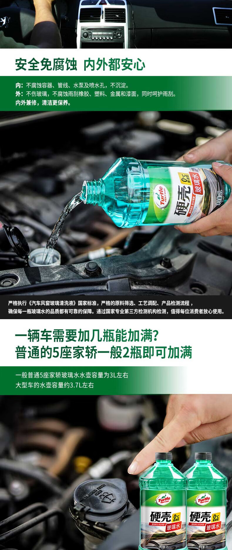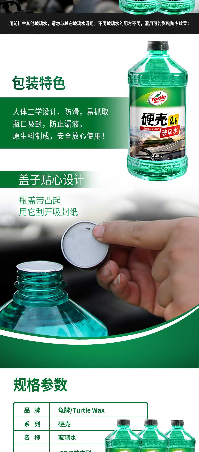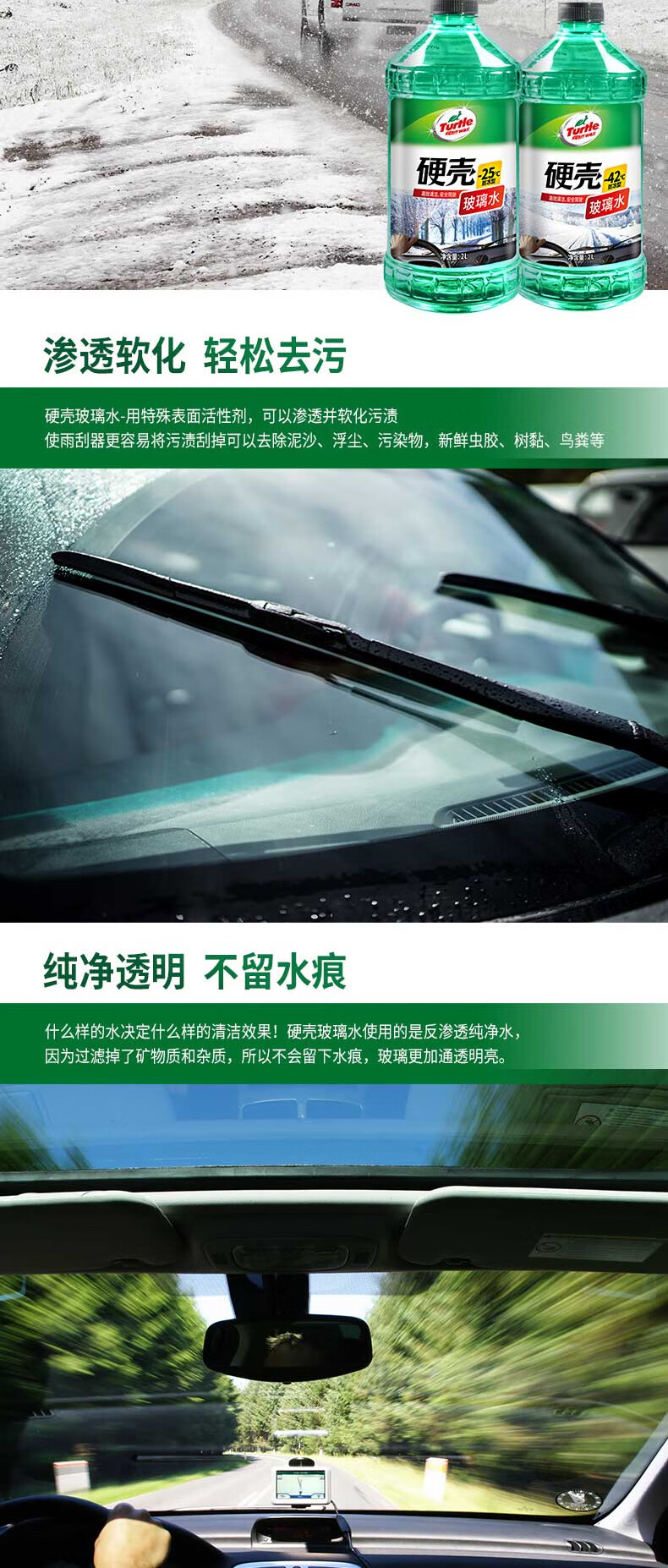 龟牌(Turtle Wax)硬壳防冻汽车玻璃水-25° 2L*6瓶 去油膜雨刮水清洁四季通用4082-6 1904701