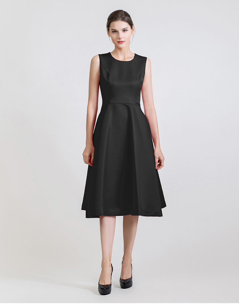 LIZZY 轻奢赫本风圆领无袖大摆轻礼服连衣裙6673