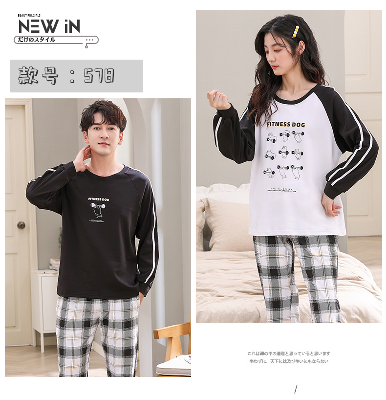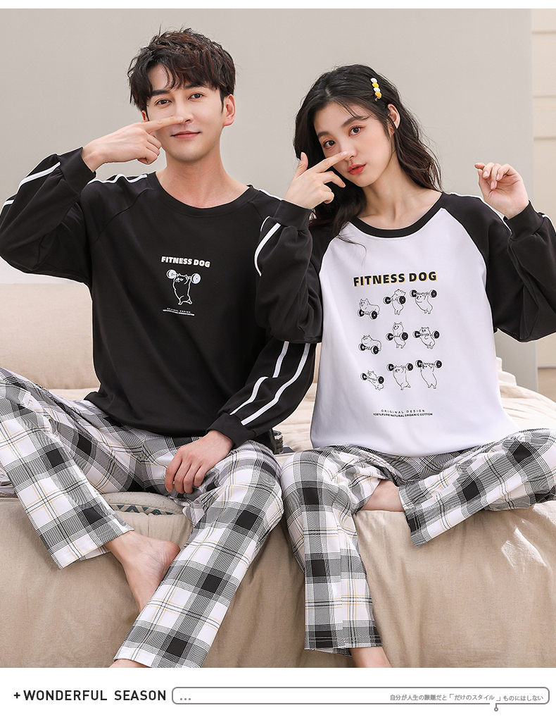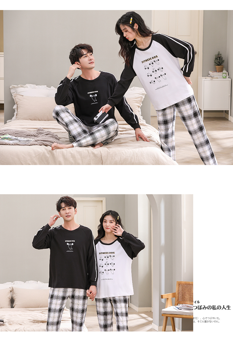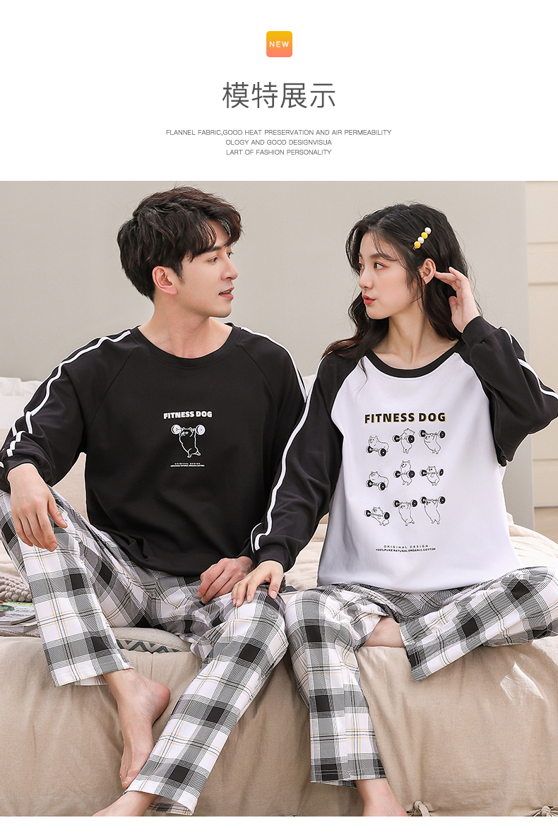 自然醒睦棉情侣家居服100%棉双面加厚长袖长裤套头睡衣QH