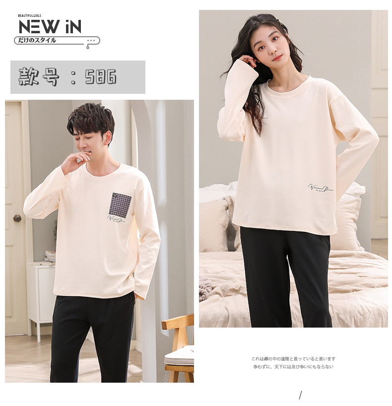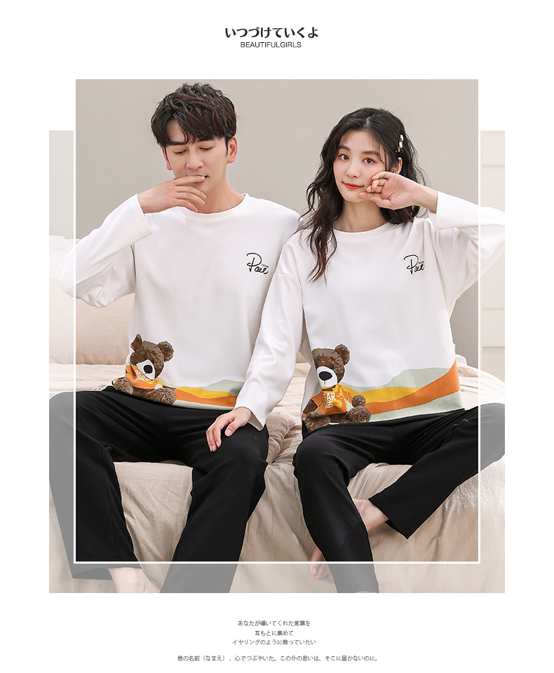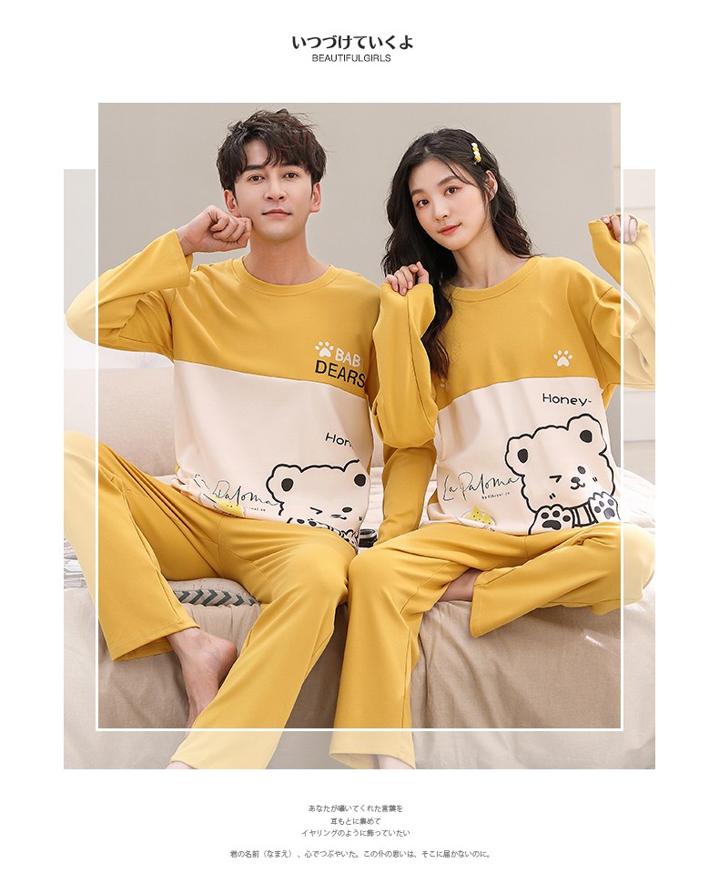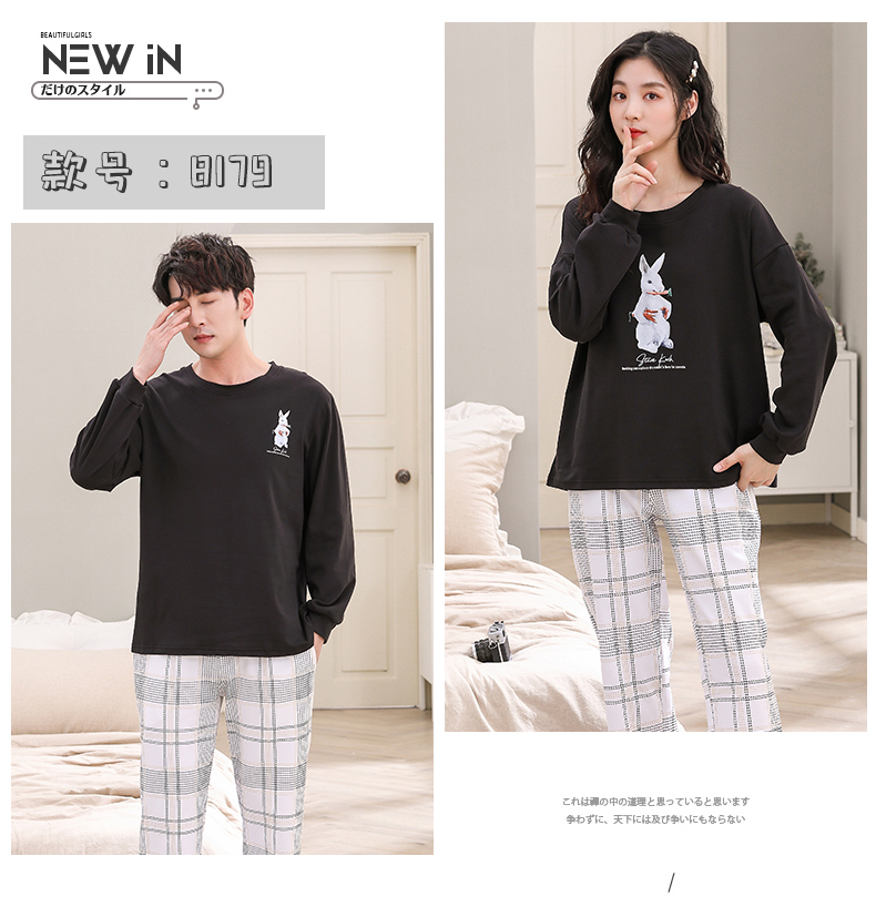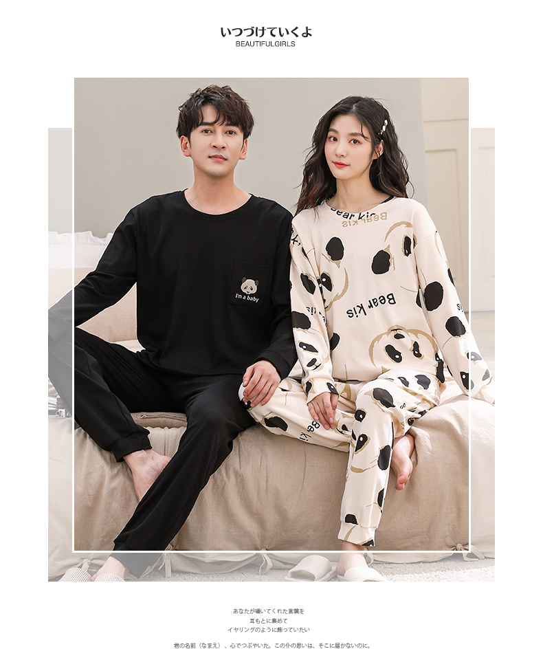 自然醒睦棉情侣家居服100%棉双面加厚长袖长裤套头睡衣QH