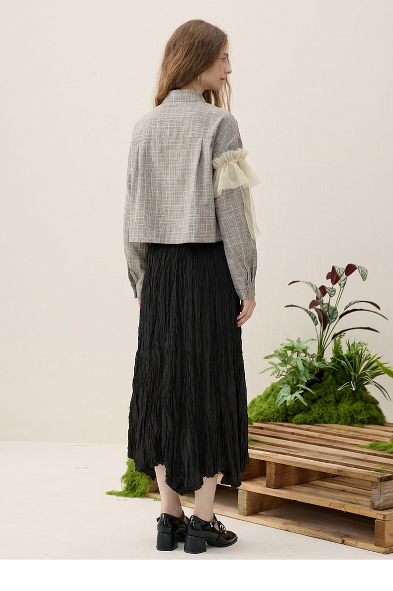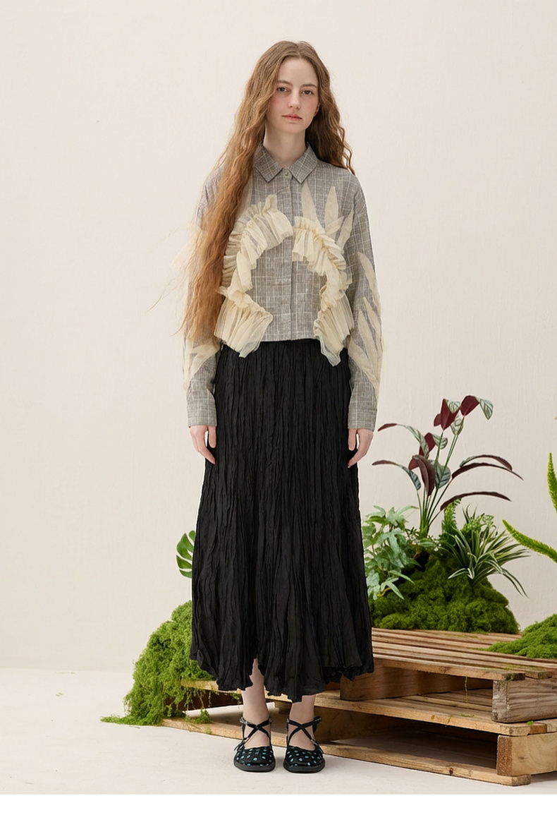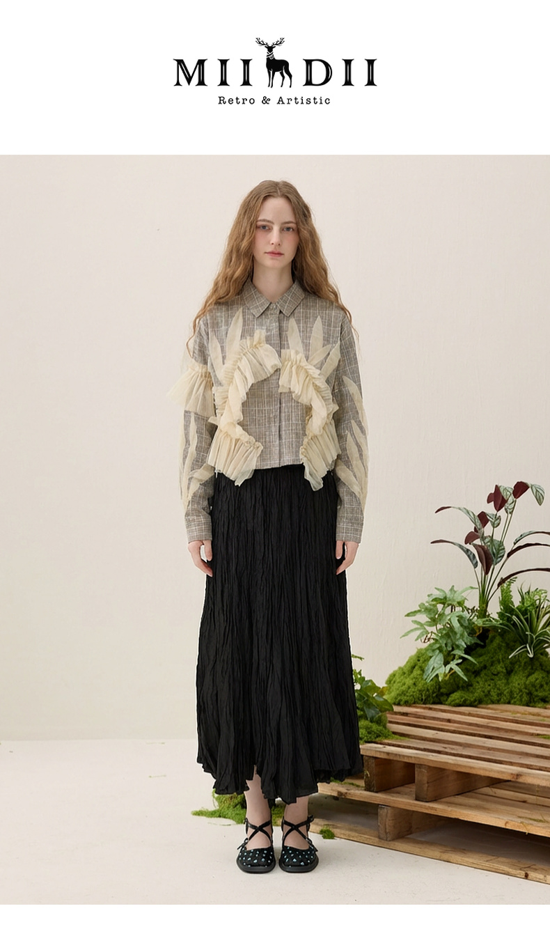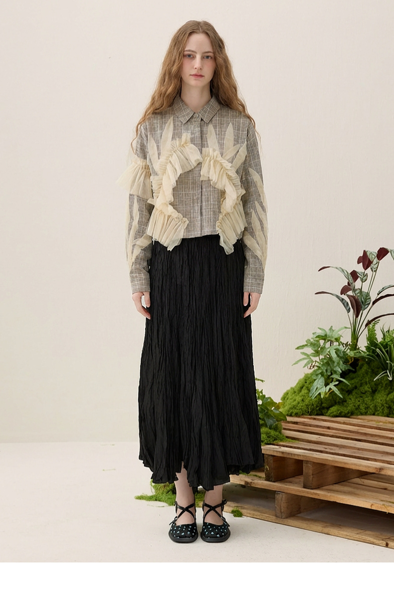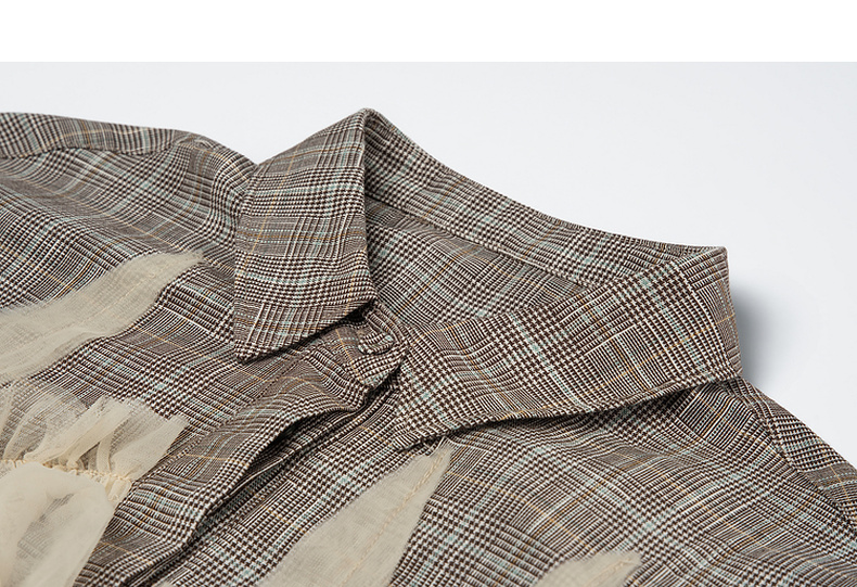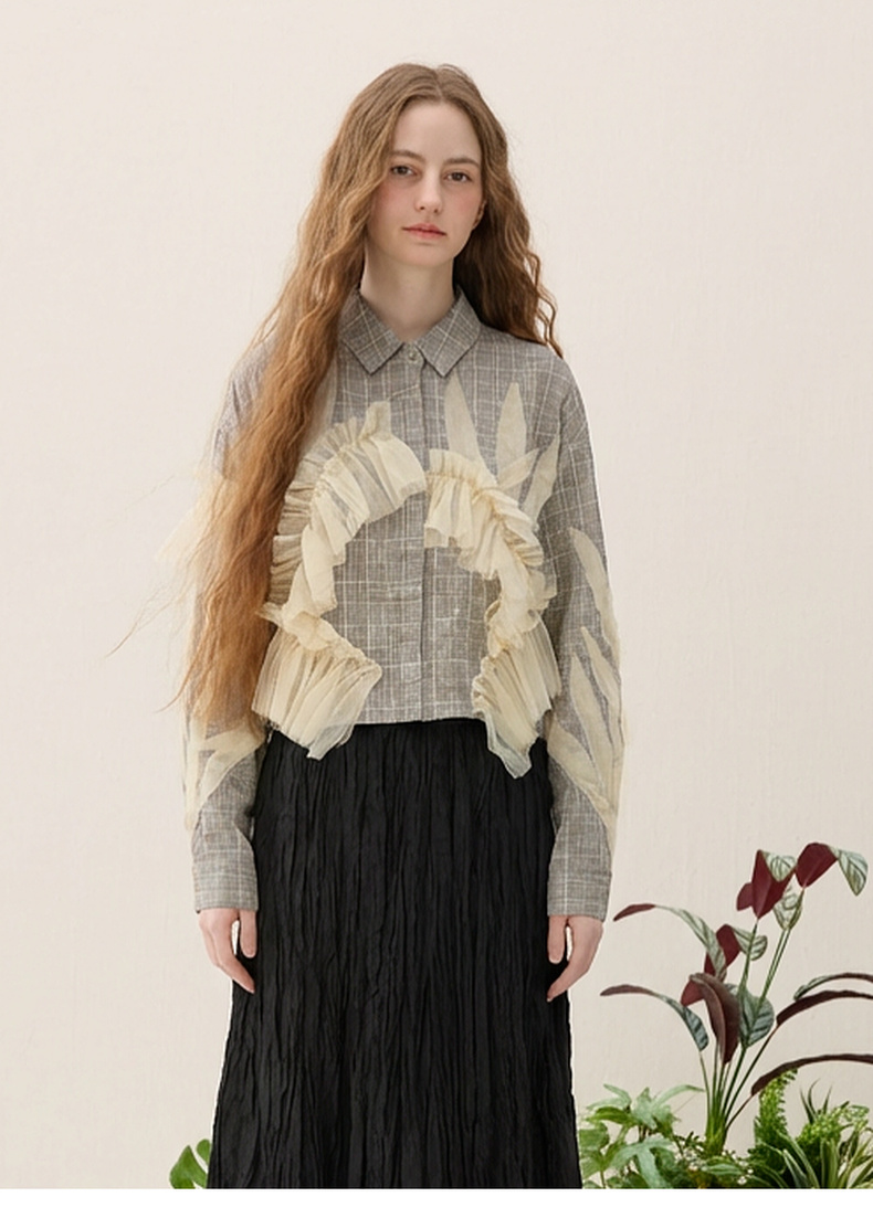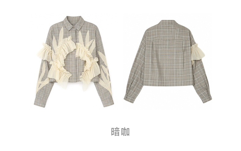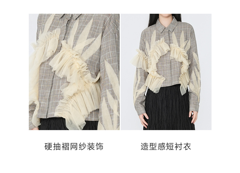 谜底短款拼接网纱衬衫长袖2026春新品特色造型感衬衣女265GC5017