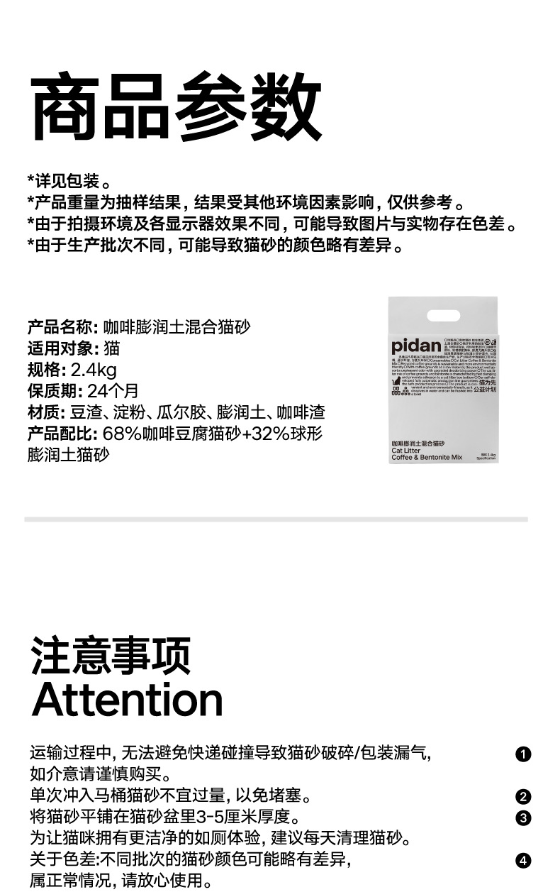 pidan皮蛋猫砂 咖啡混合猫砂 2.4kg*4袋