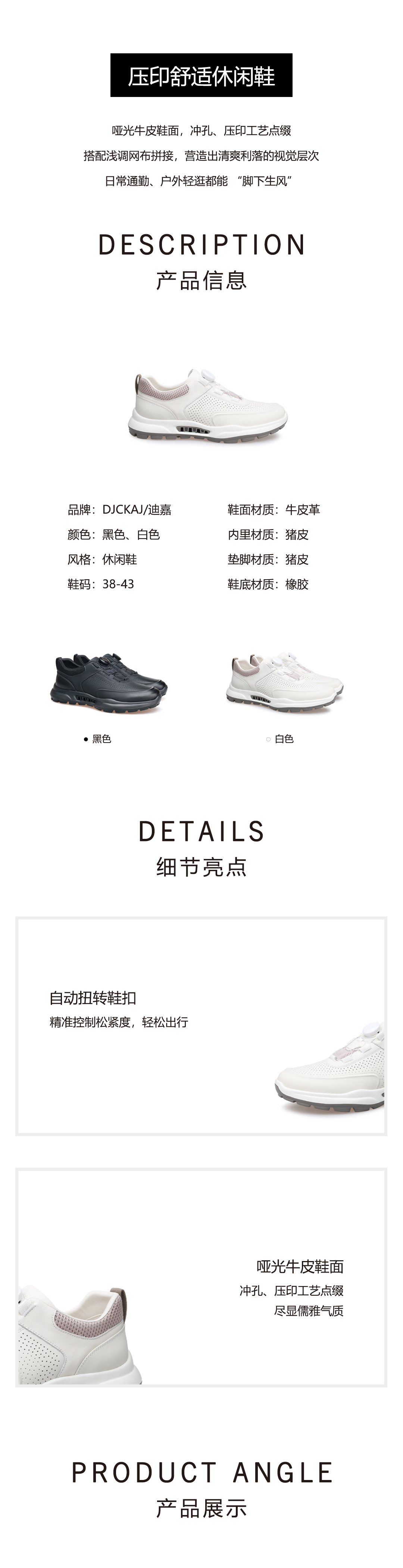 豪麟名鞋奥莱迪嘉男鞋牛皮革休闲鞋DJWTO52MX206白色 原价1960元