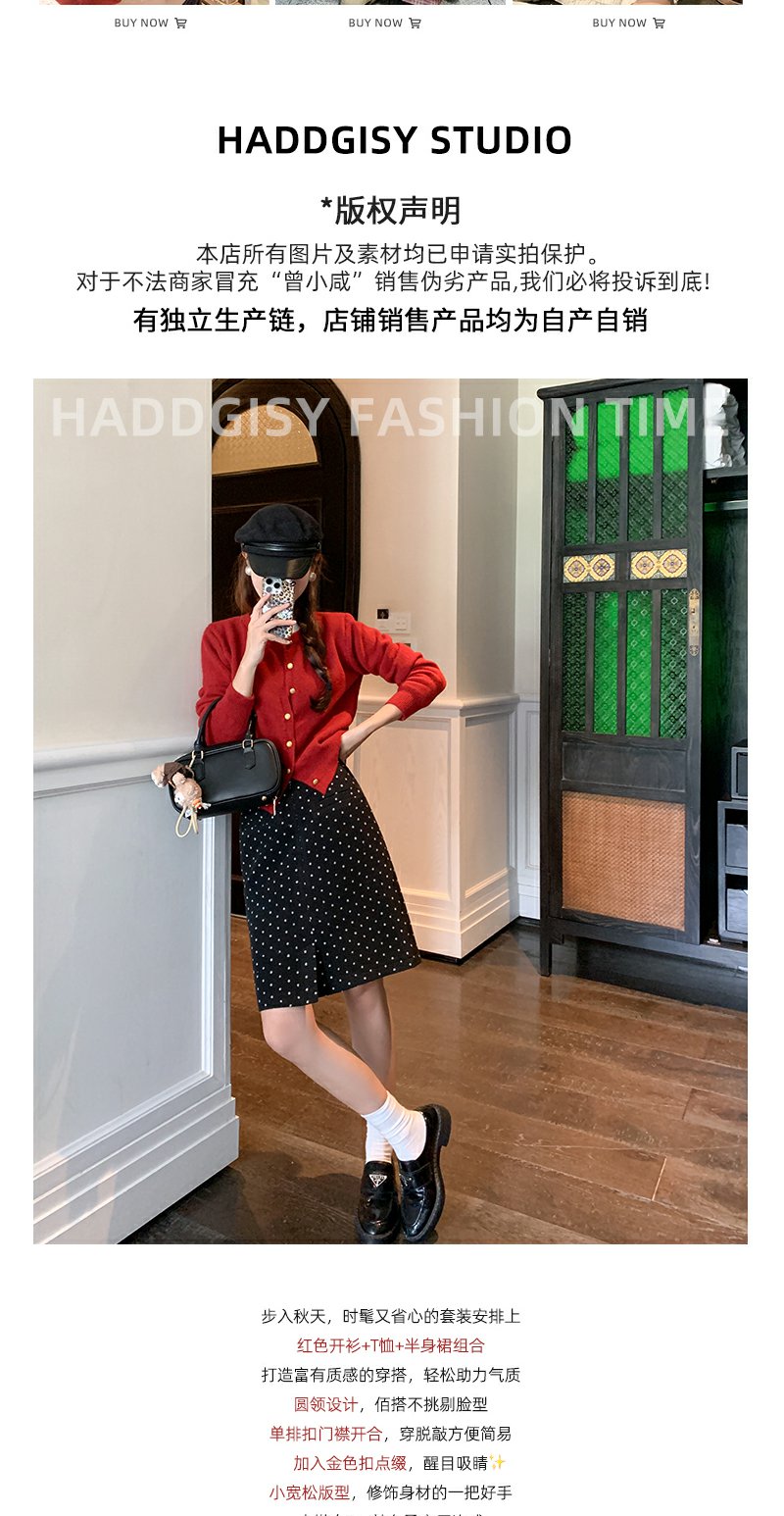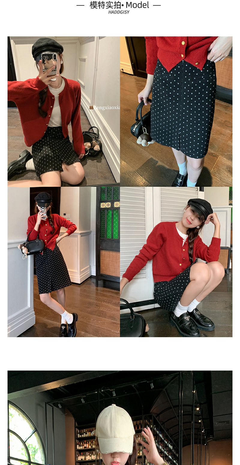 <曾小咸推荐>【复古红色套装毛织开衫半身裙