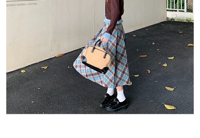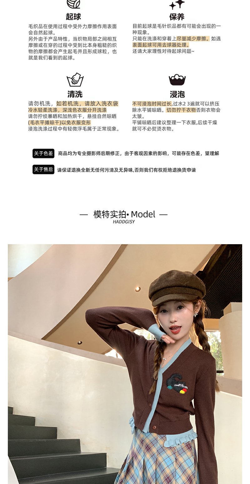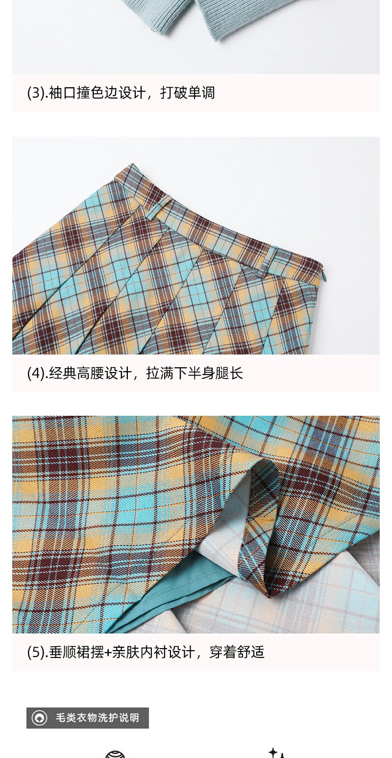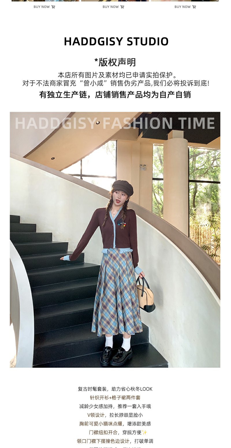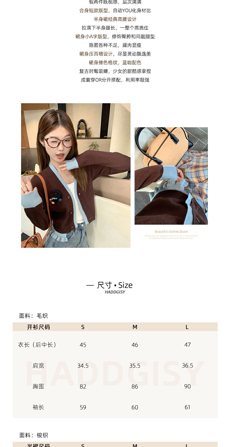 <曾小咸推荐>学院风假两件毛织开衫格子半裙