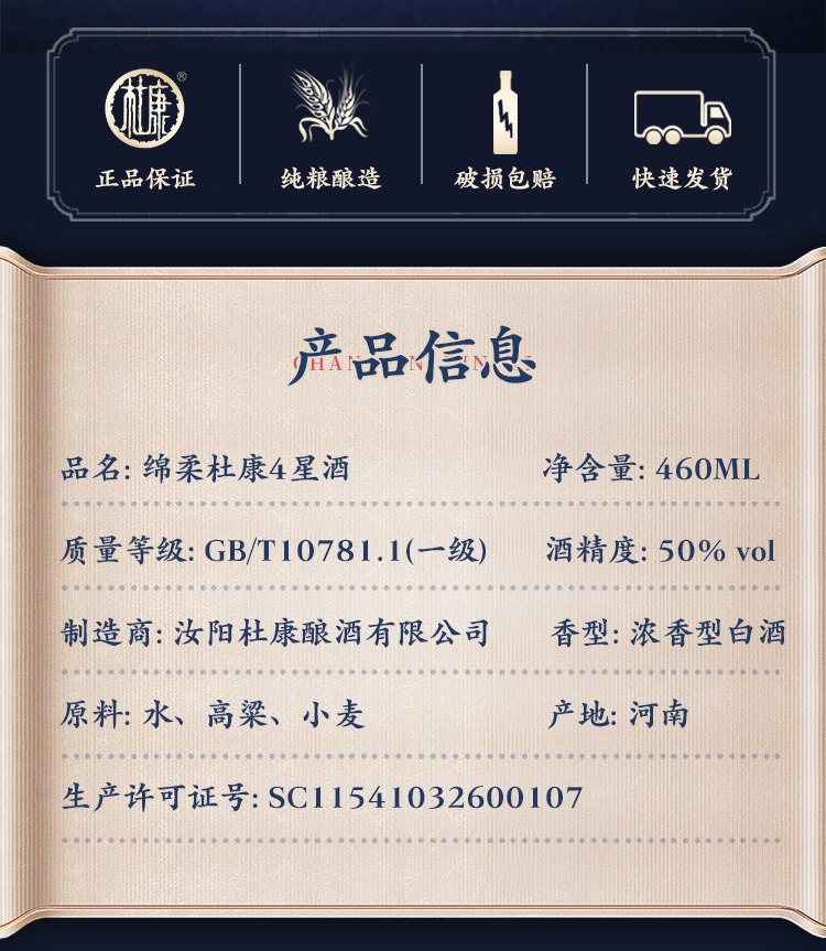 绵柔杜康四星酒50度460ml*6瓶整箱浓香型白酒