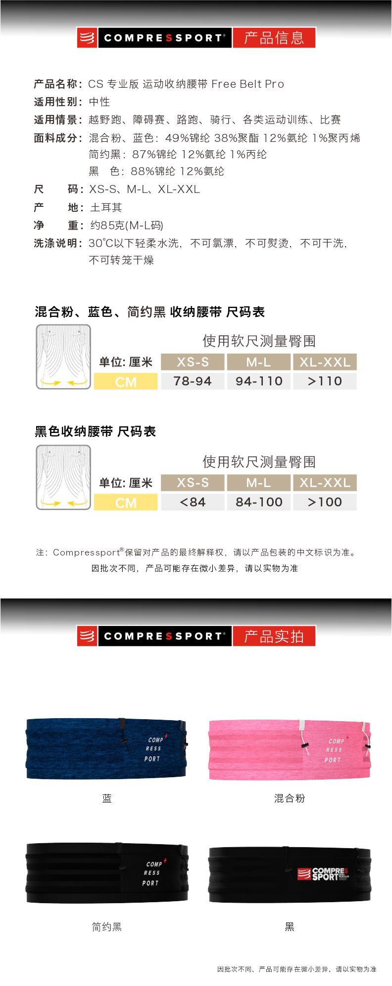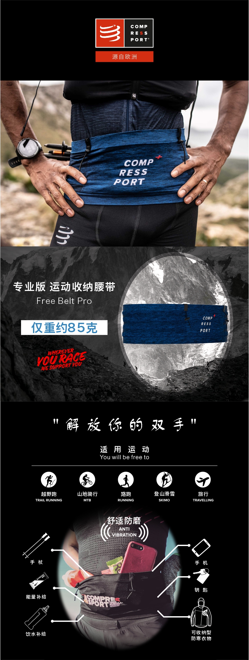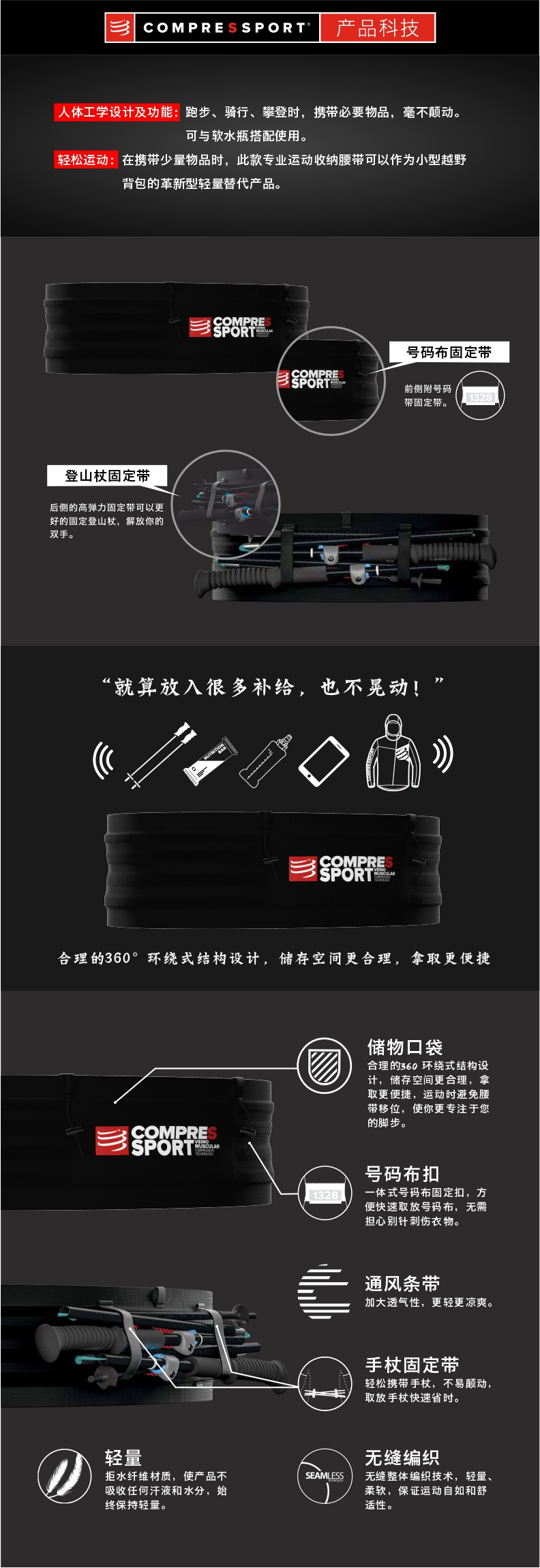 compressport/CS 专业版运动收纳腰带 轻量无缝编织