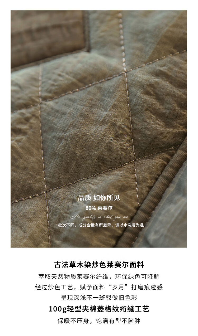 COCOBELLA[莱赛尔]新中式复古炒色轻型棉服国风绗缝棉衣MF7002