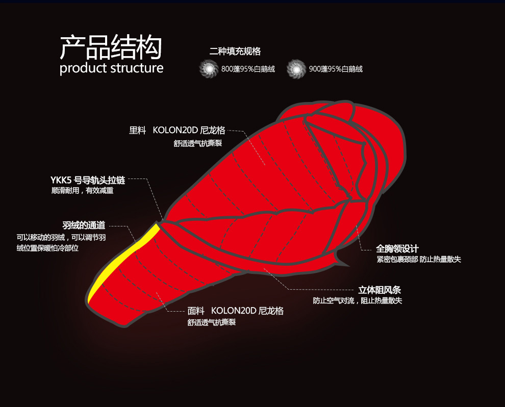 黑岩(BlackCrag) 拨云 KOLON面料睡袋800蓬鹅绒 专业木乃伊超轻户外鹅绒睡袋