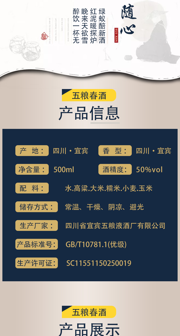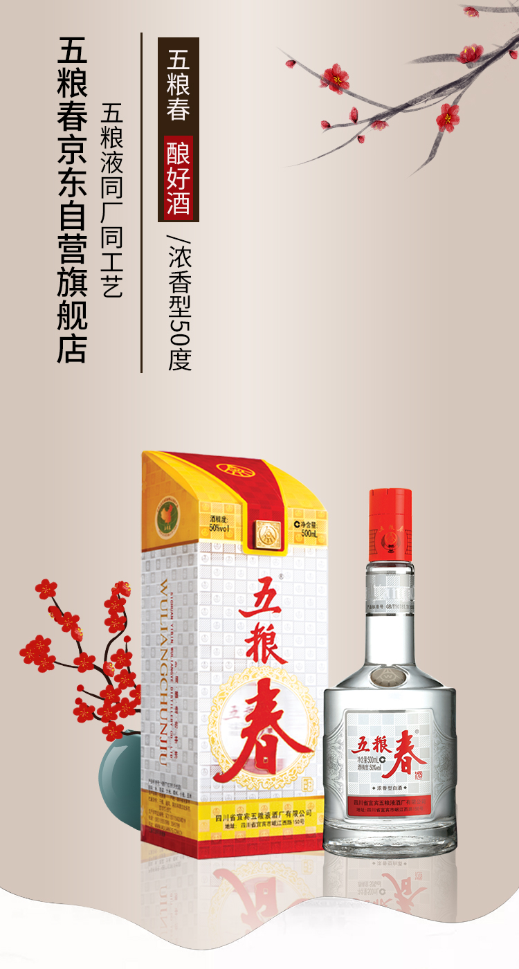 五粮液公司出品 五粮春 50度 浓香型 高度白酒 500ml*1瓶