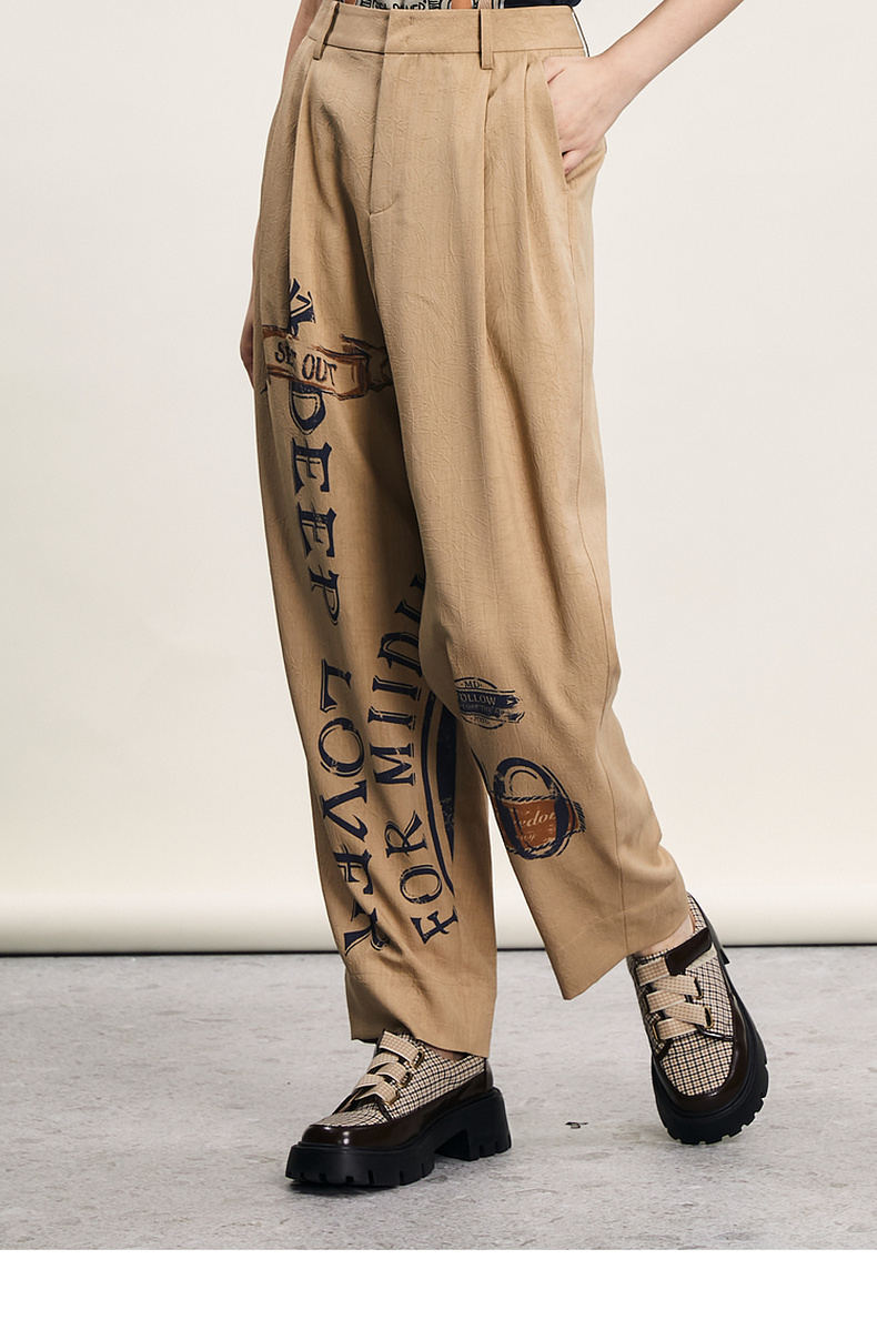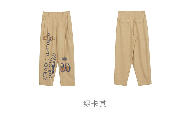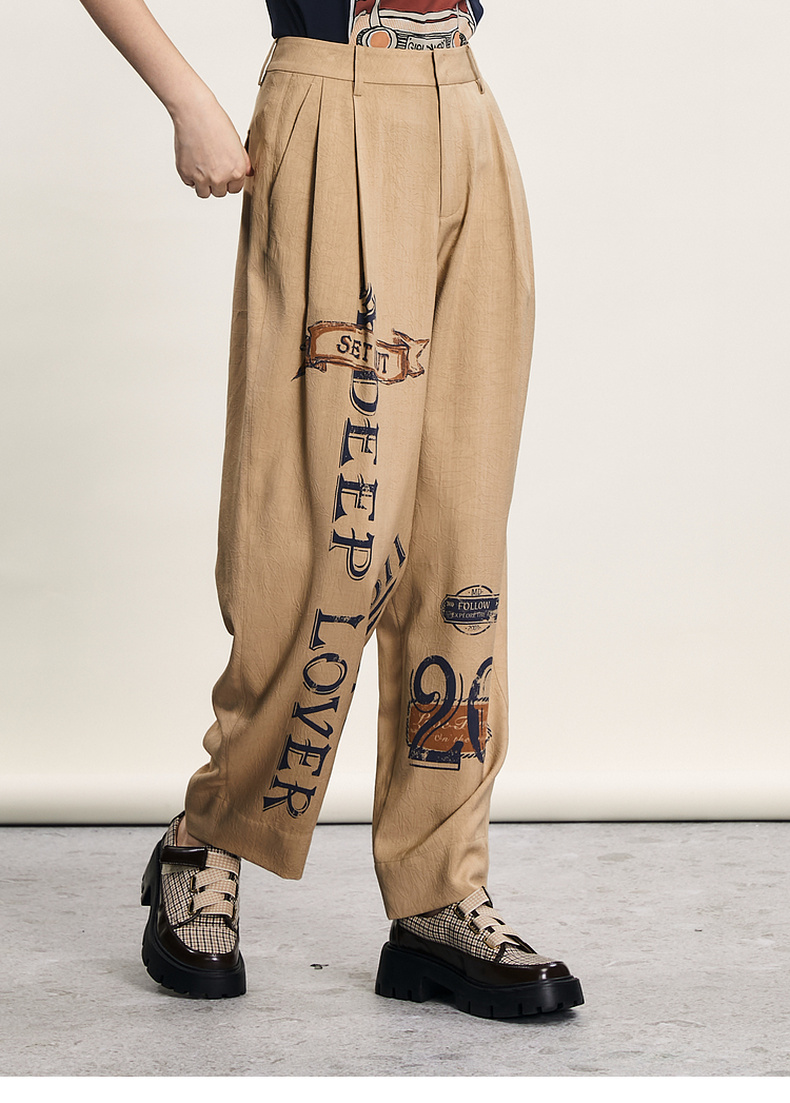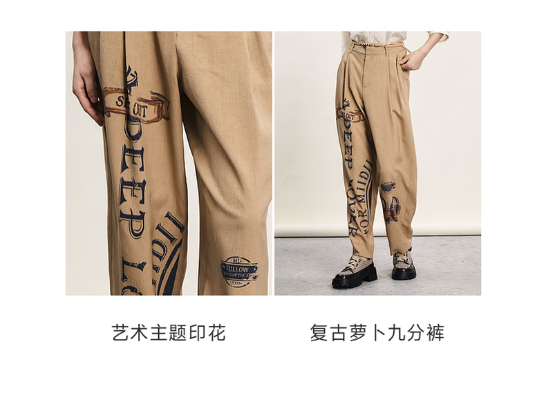 谜底裤松萝卜裤女2024年夏季新品复古时尚印花西裤长裤242MK0522