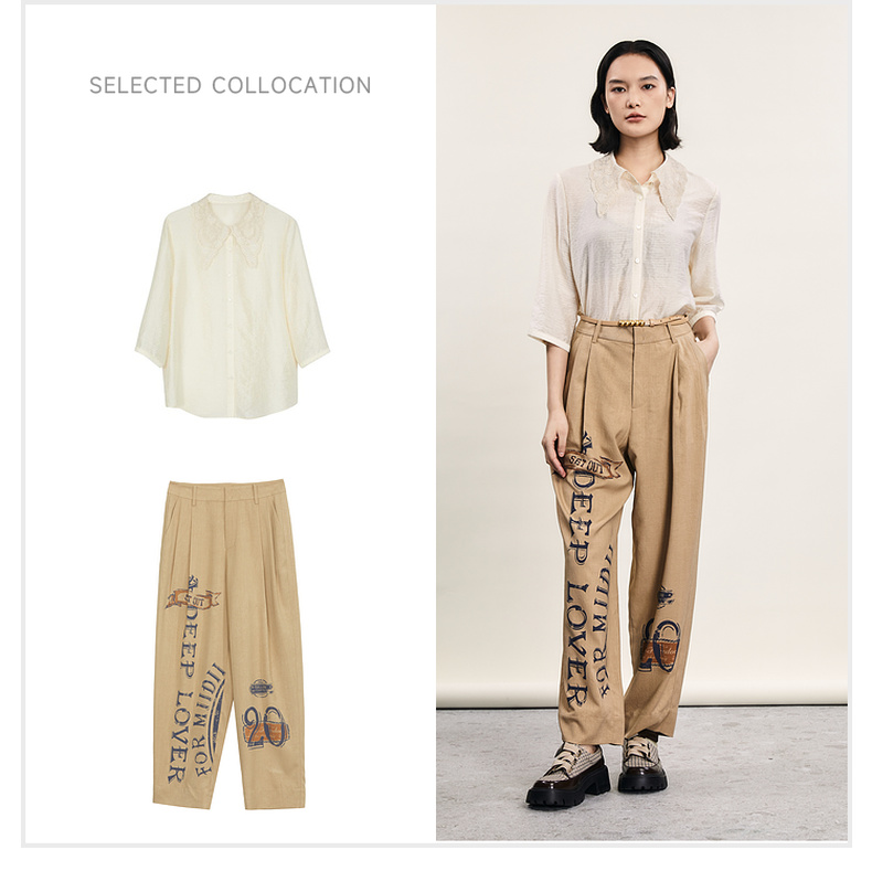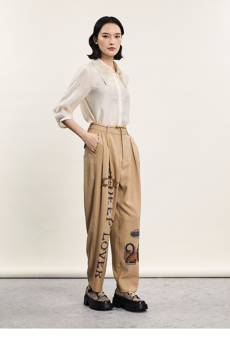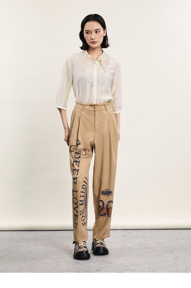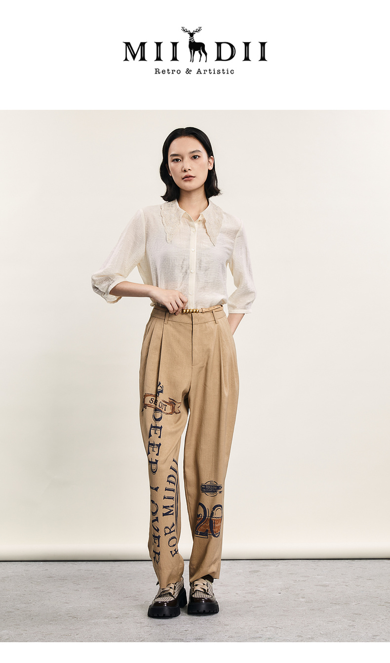 谜底裤松萝卜裤女2024年夏季新品复古时尚印花西裤长裤242MK0522