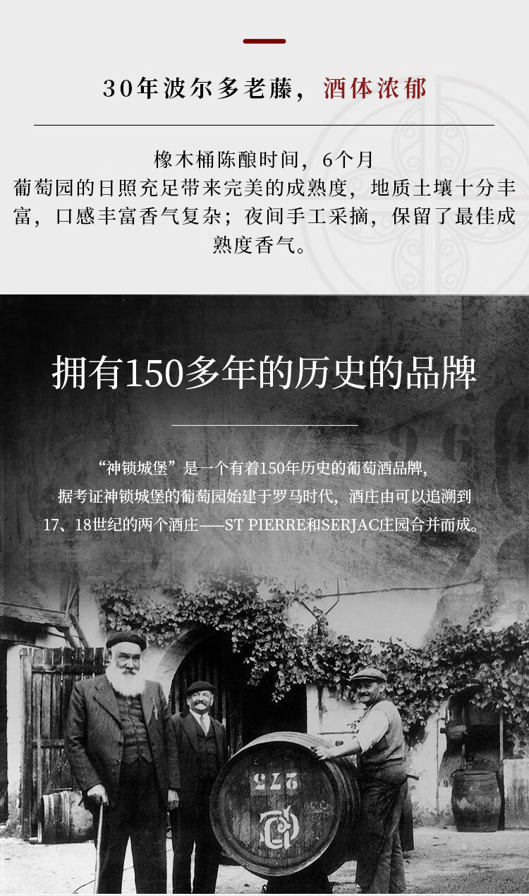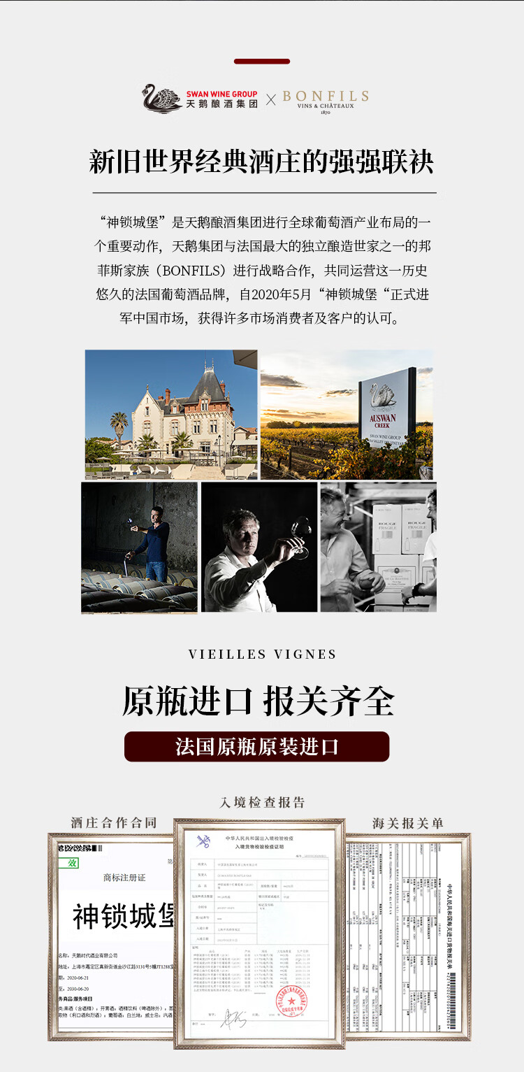 天鹅庄神锁城堡30年老藤干红葡萄酒单支