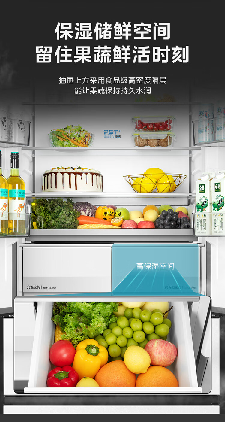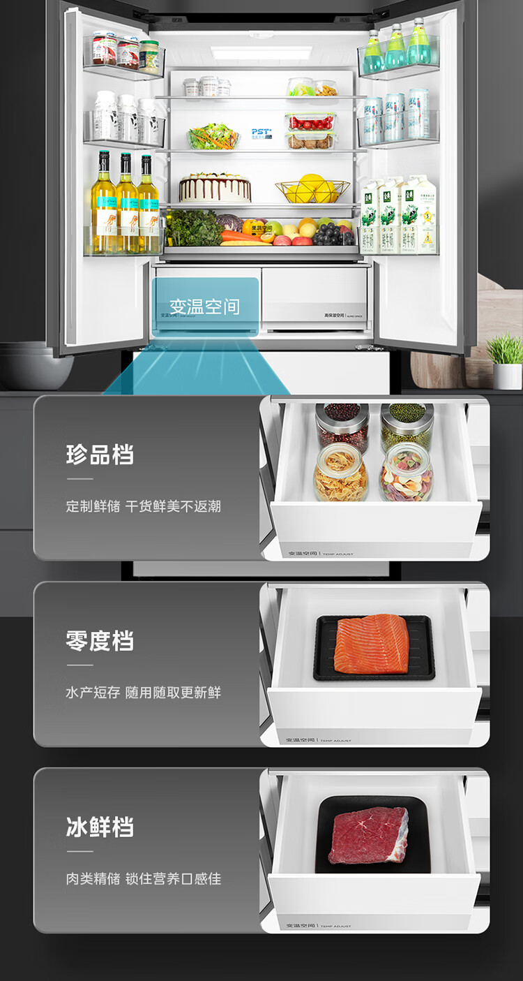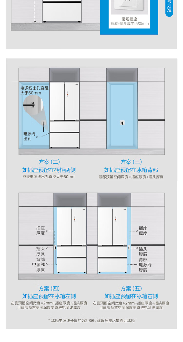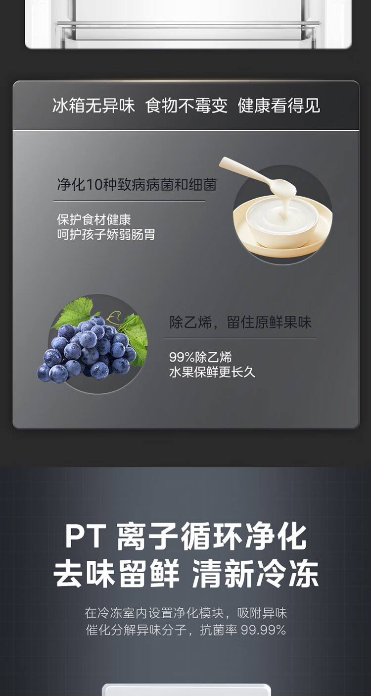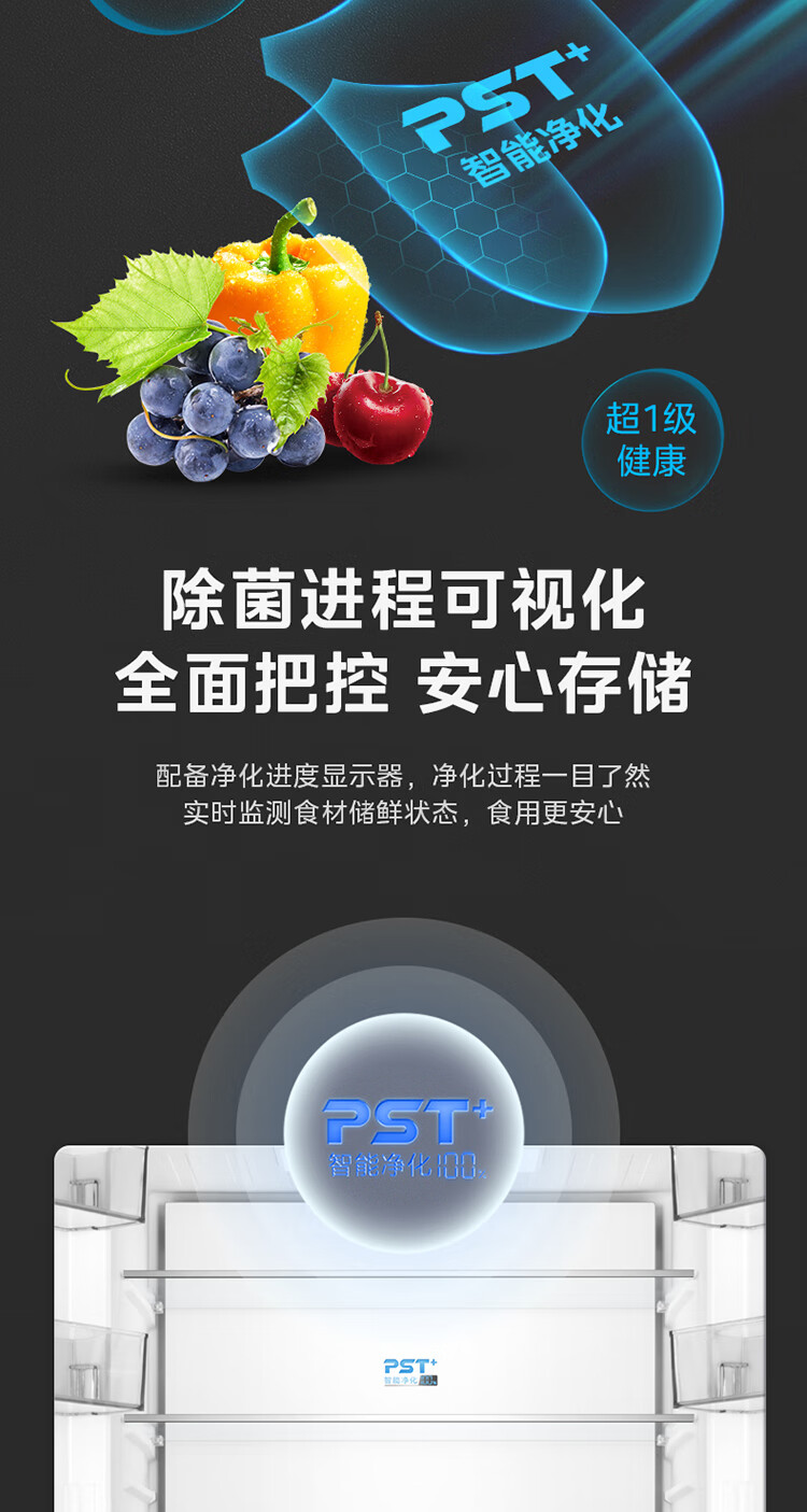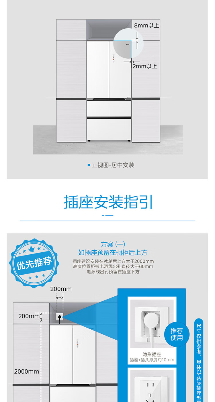 美的(Midea)冰箱520升法式四门60cm薄纯平全嵌超净科技除菌保鲜智能家用大冰箱BCD-520WUFGPZM凝光白