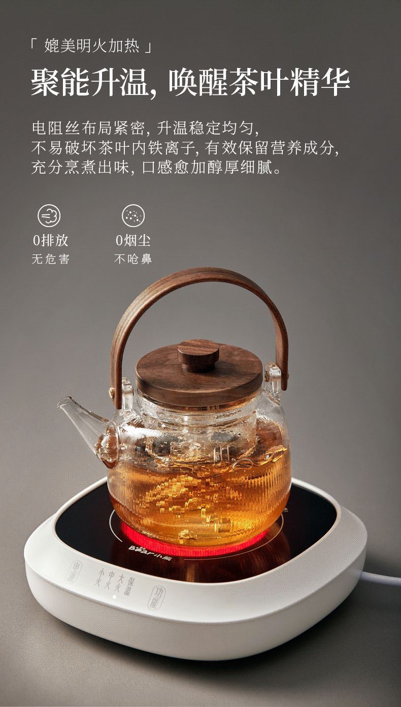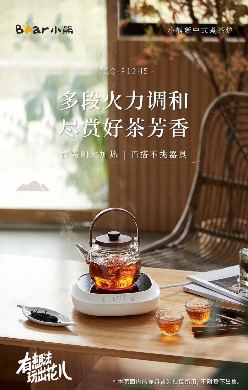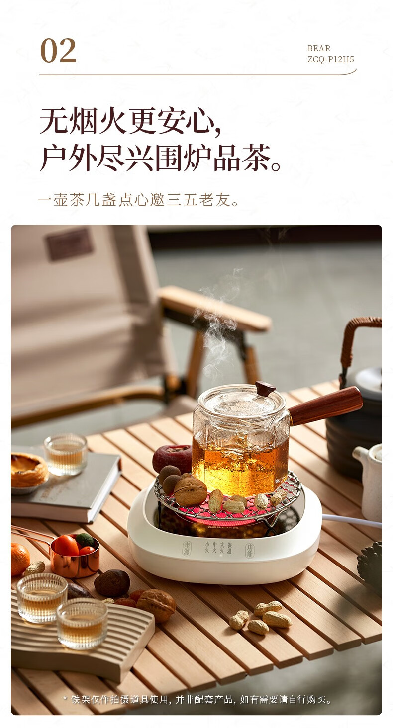 小熊(Bear)电茶炉电陶炉小型围炉煮茶器养生黑白茶多段火力不挑器具加热杯垫100℃可烧水电热底座热牛奶神器 一炉子多用途ZCQ-P12H5(无茶壶)
