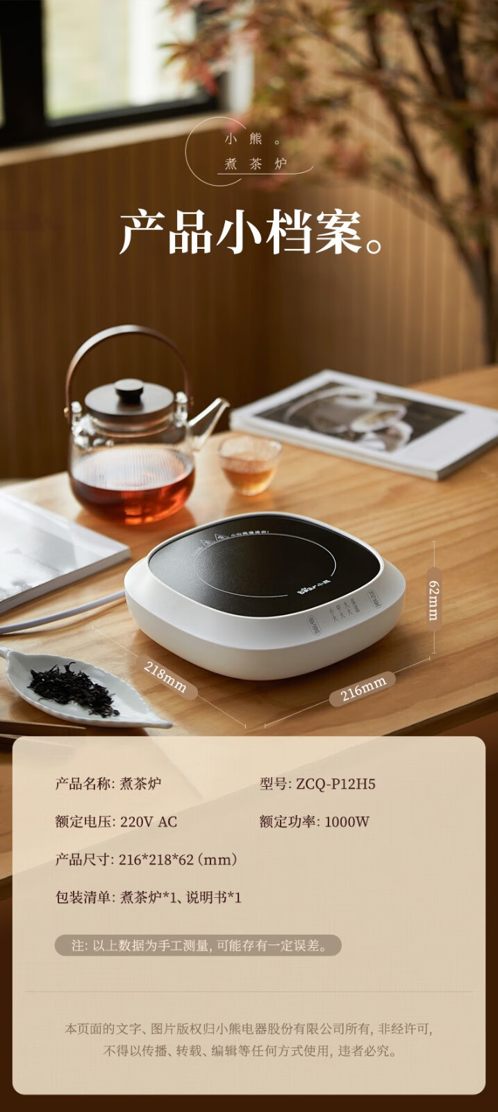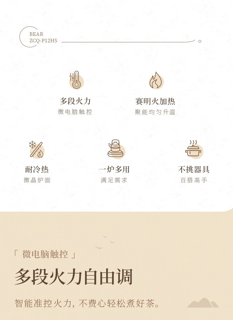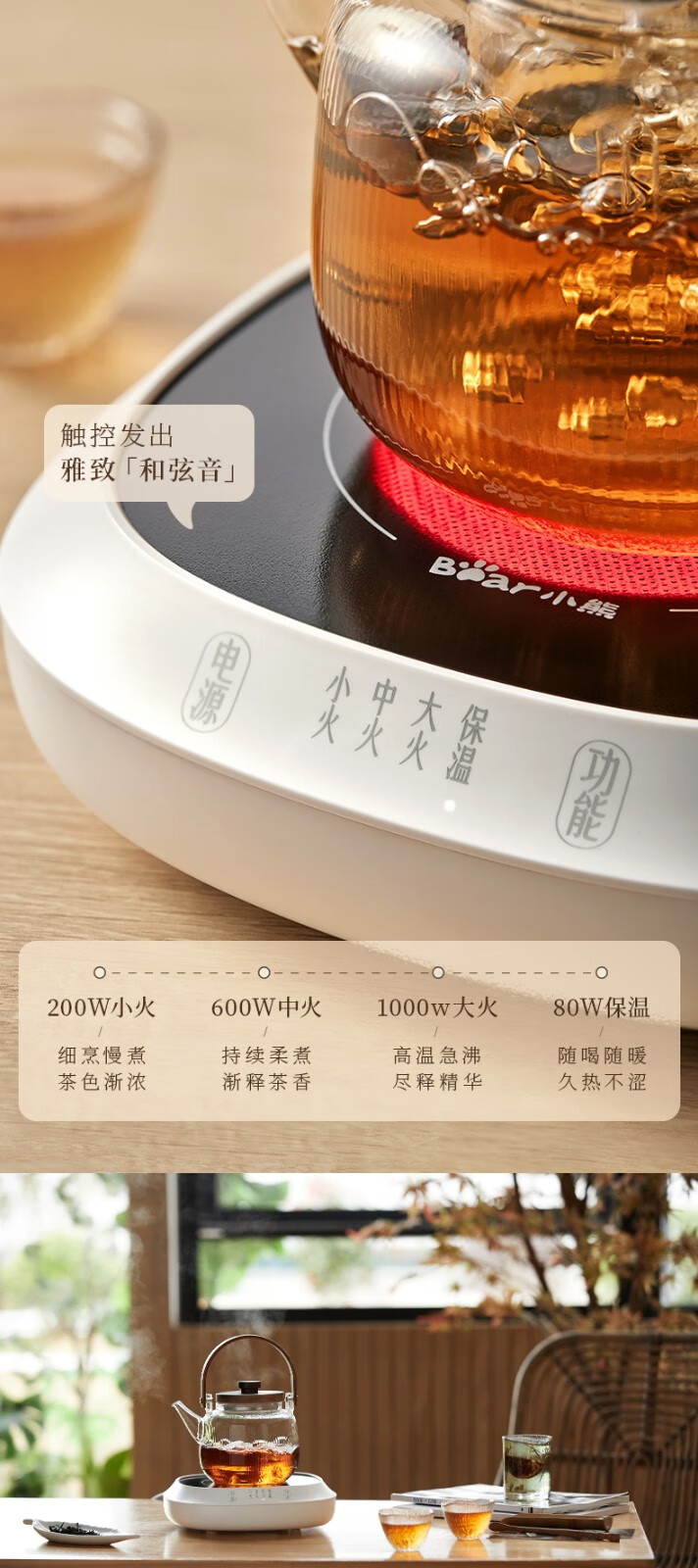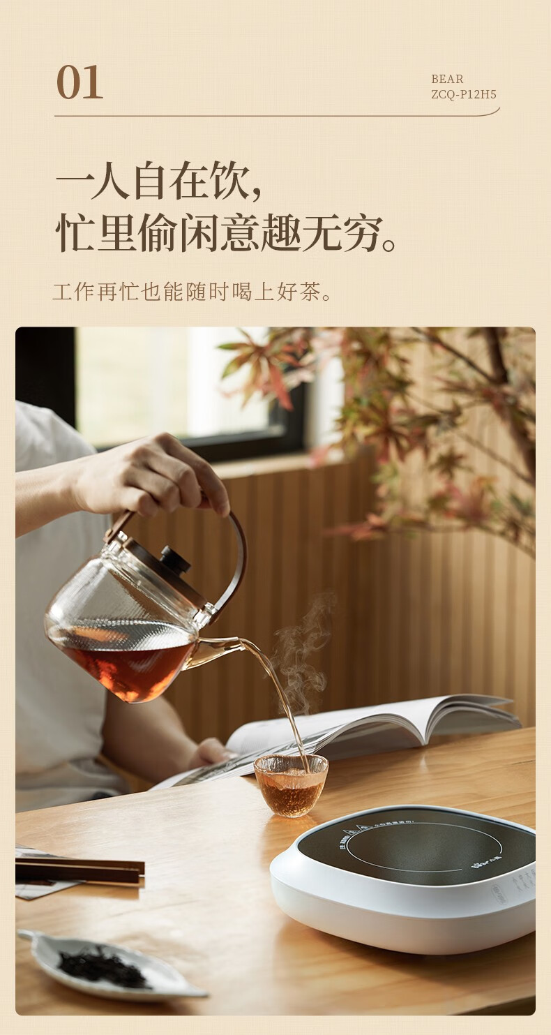 小熊(Bear)电茶炉电陶炉小型围炉煮茶器养生黑白茶多段火力不挑器具加热杯垫100℃可烧水电热底座热牛奶神器 一炉子多用途ZCQ-P12H5(无茶壶)