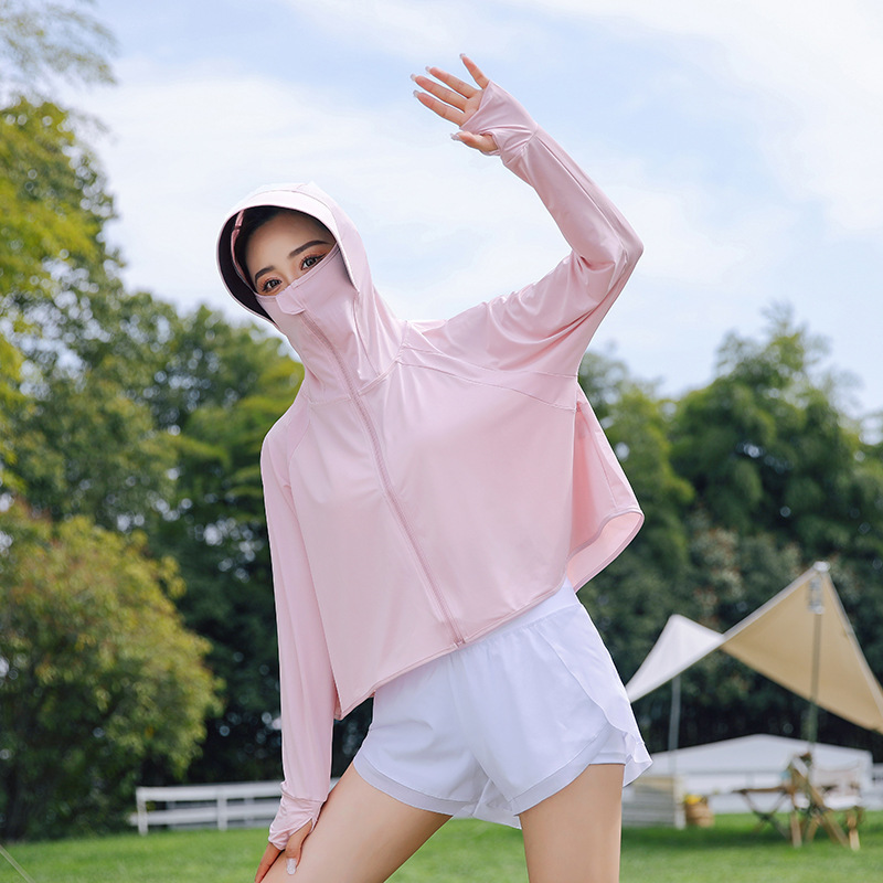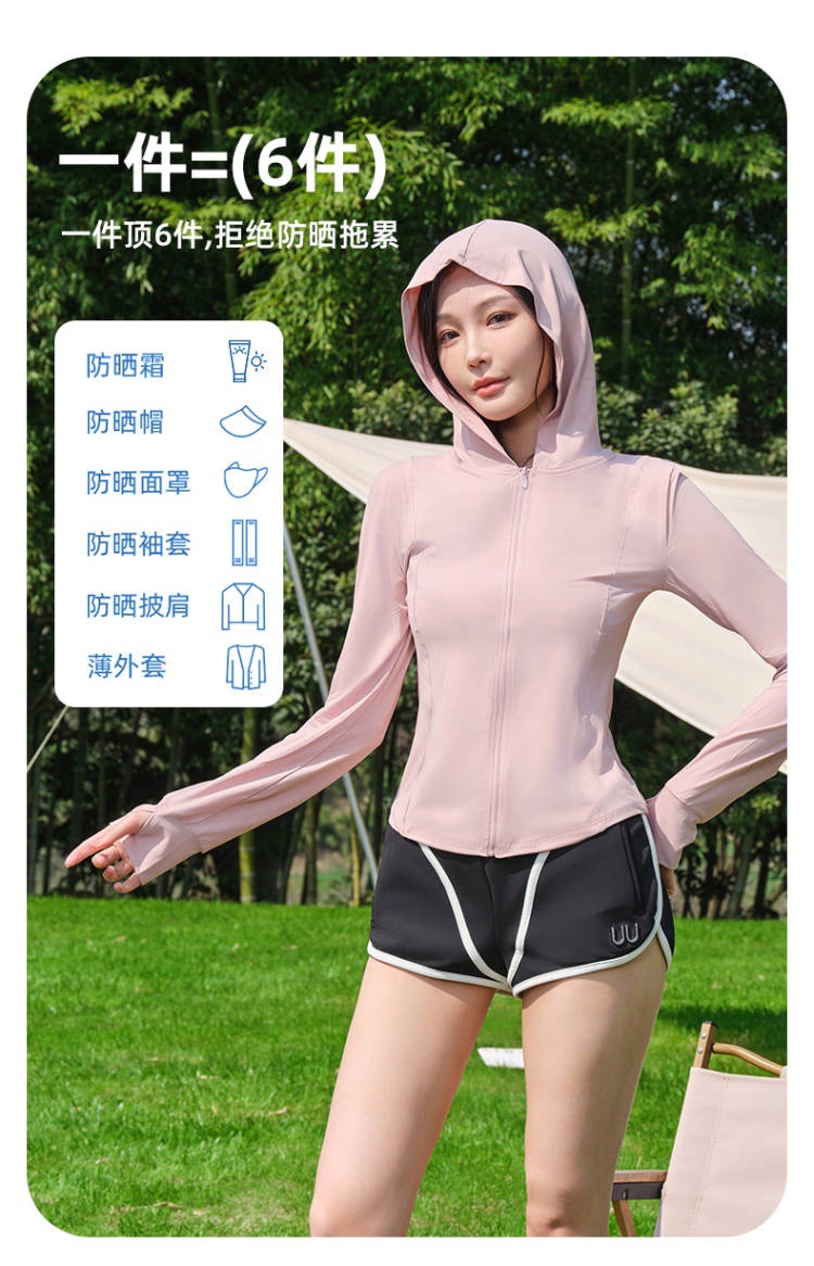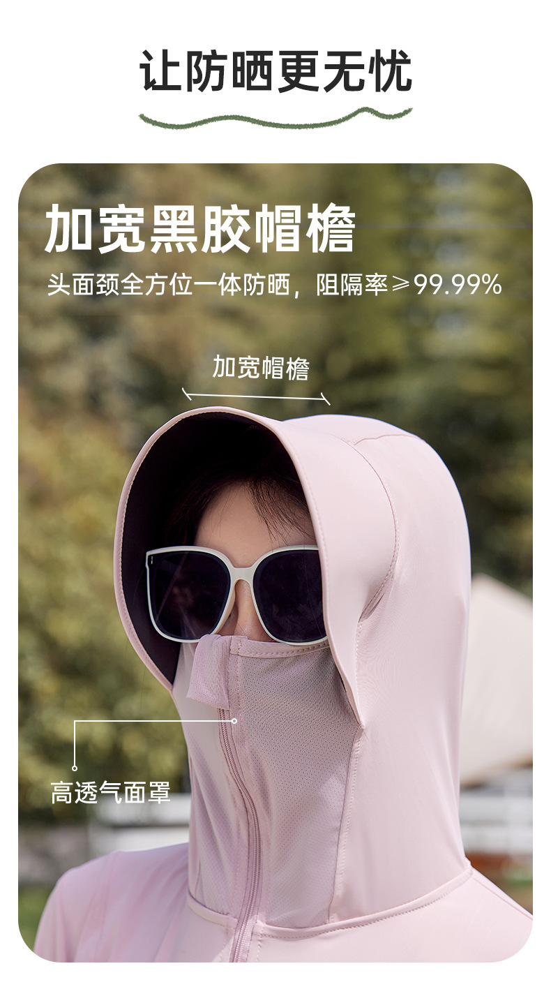 黑胶帽檐防晒衣女士夏季户外防紫外线冰丝连帽防晒服透气遮阳外套