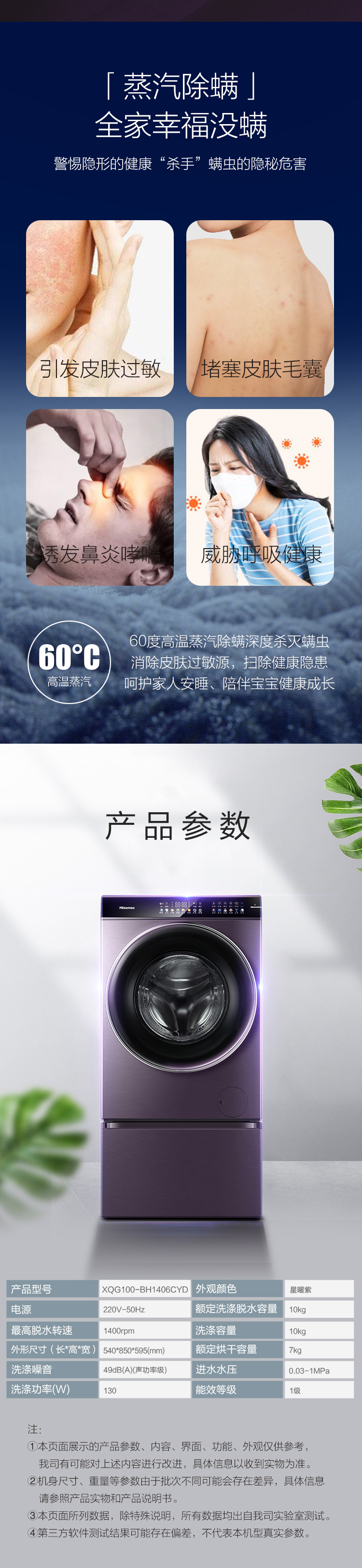 海信蒸汽除螨洗衣机XQG100-BH1406CYD