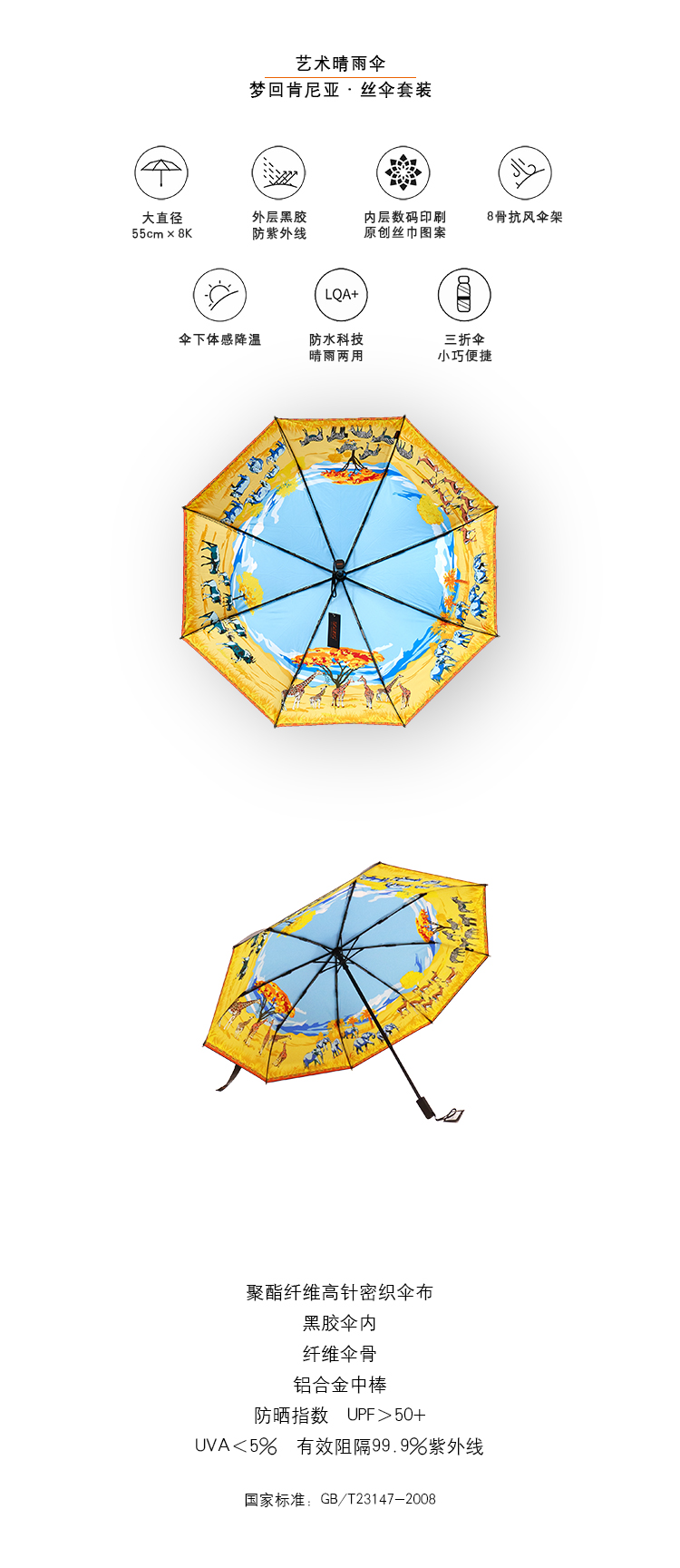 梦回肯尼亚·真丝大方巾和艺术晴雨伞套装