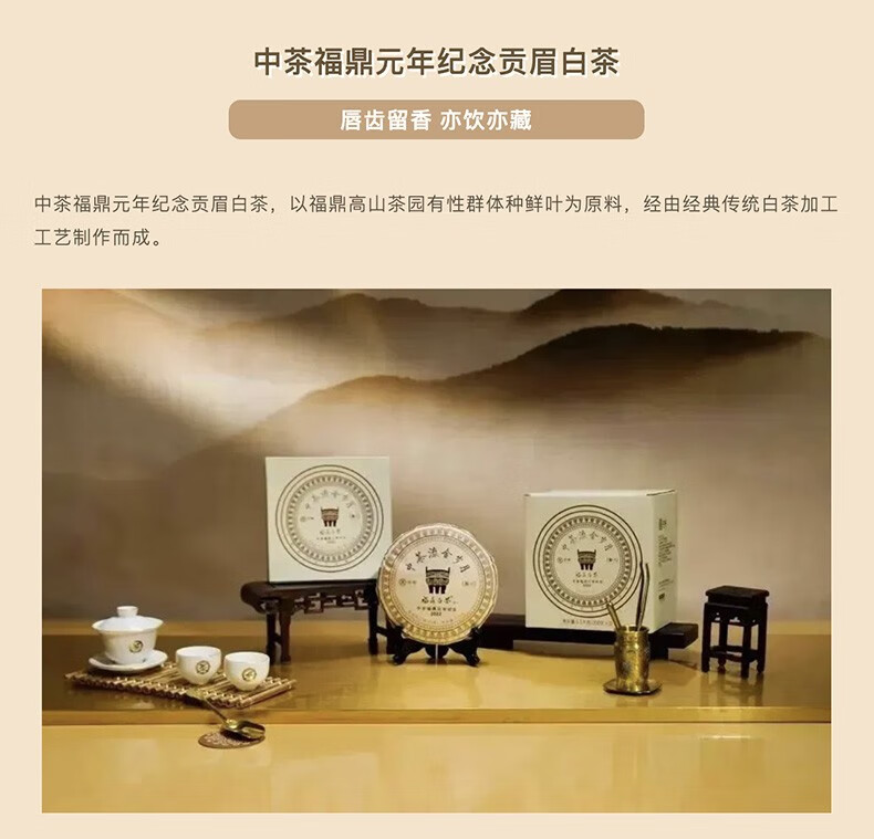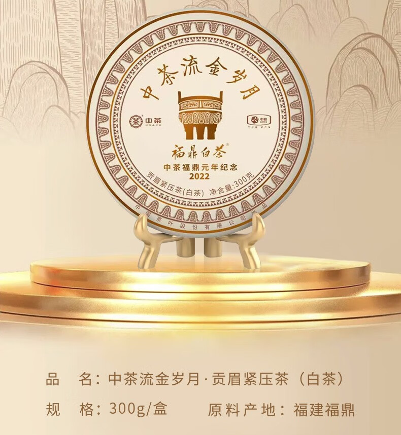 中粮-中茶流金岁月福鼎白茶贡眉紧压茶(中茶福鼎元年纪念款)300g/饼/原产地直发