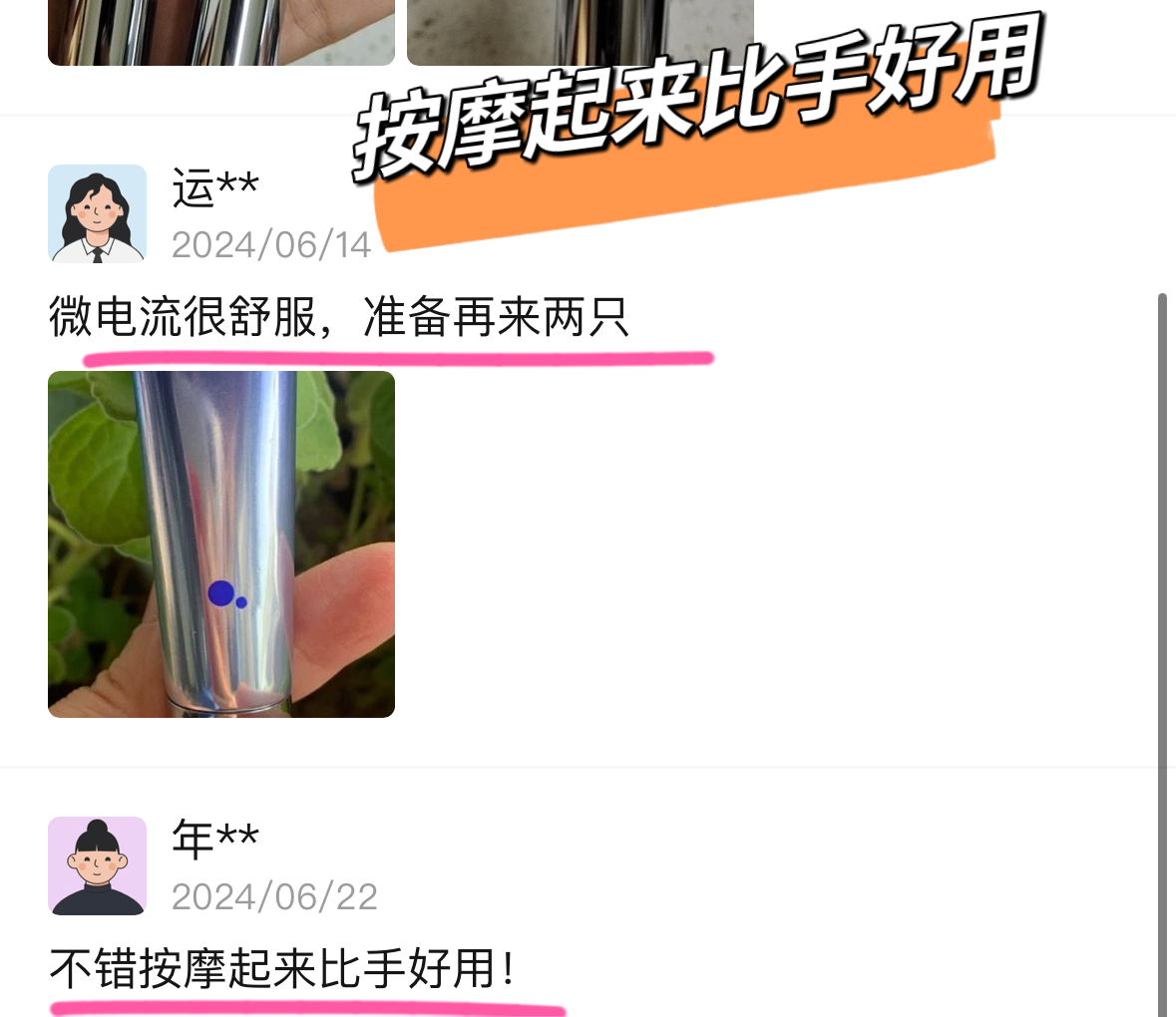 除了按摩眼周,甚至抬头纹,脸部法令纹,唇纹、颈纹,提拉脸部都可以用这支按摩棒进行按摩(要注意按摩头的卫生哦)。