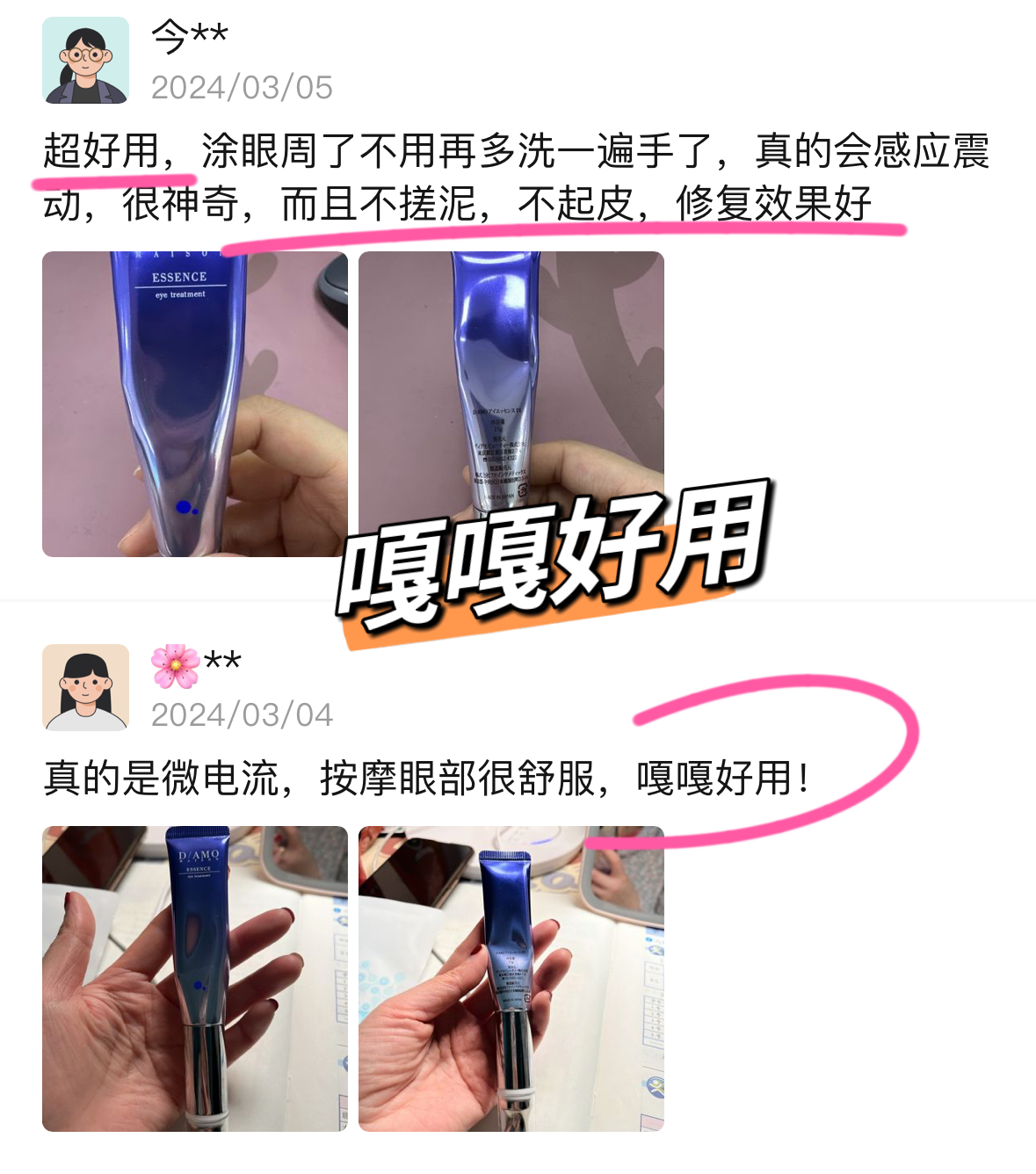 熬夜眼部水肿,黑眼圈,大眼袋,只要5分钟就能消肿、驱黑、紧致眼部肌肤,眼部护理Damo眼部微电流精华绝对是认真的!