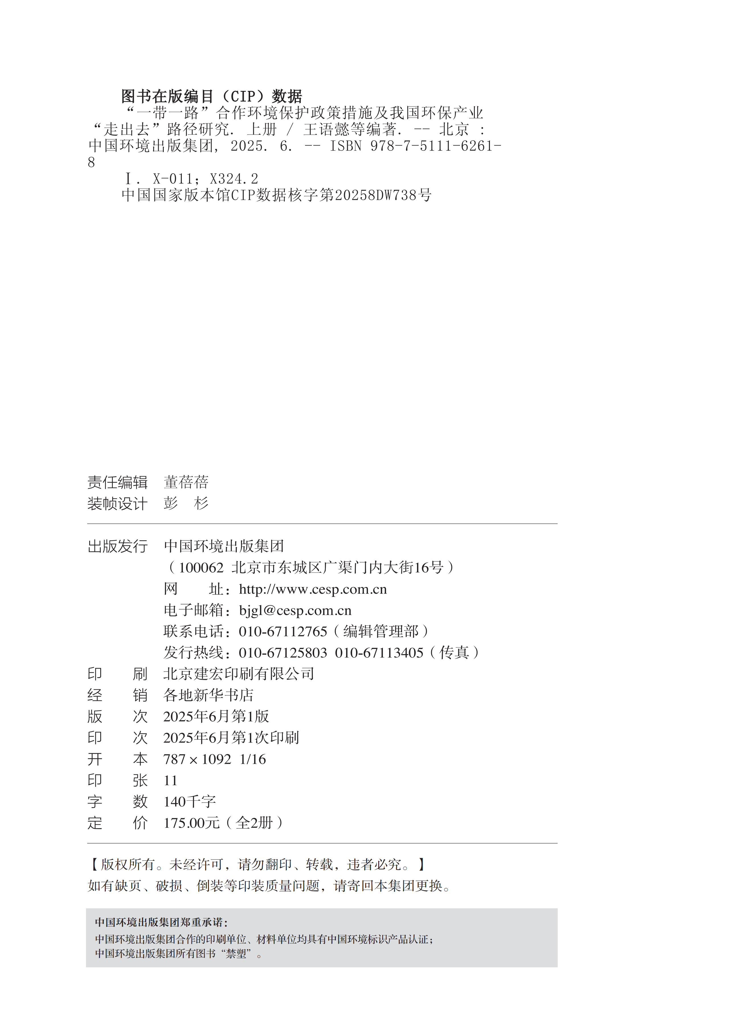 “一带一路”合作环境保护政策措施及我国环保产业“走出去”路径研究(上下册)