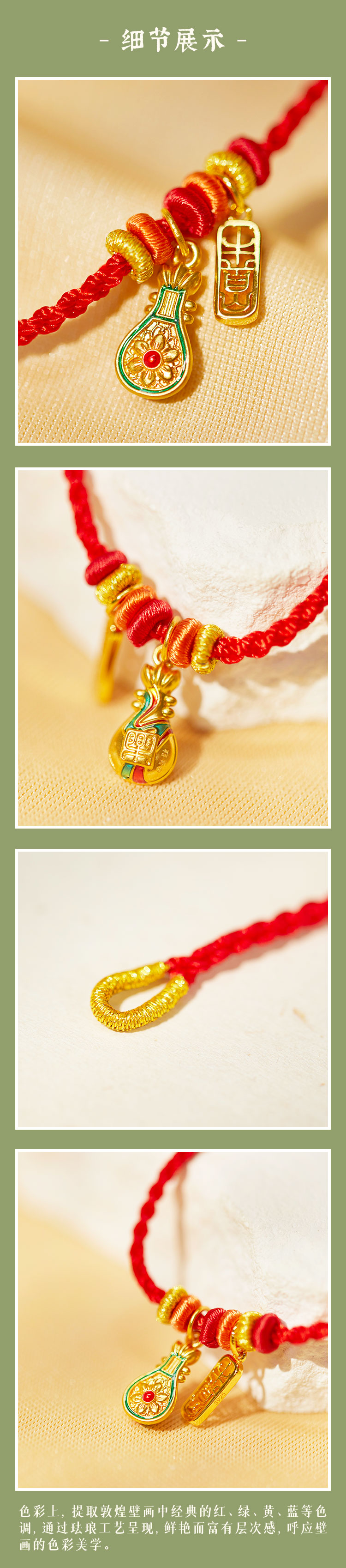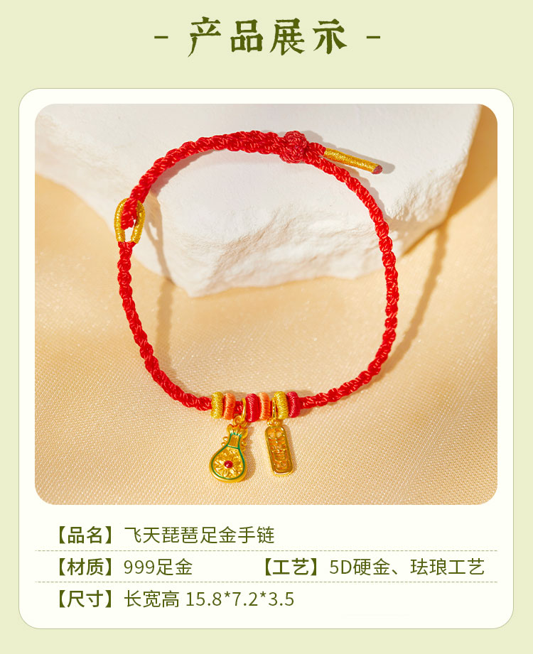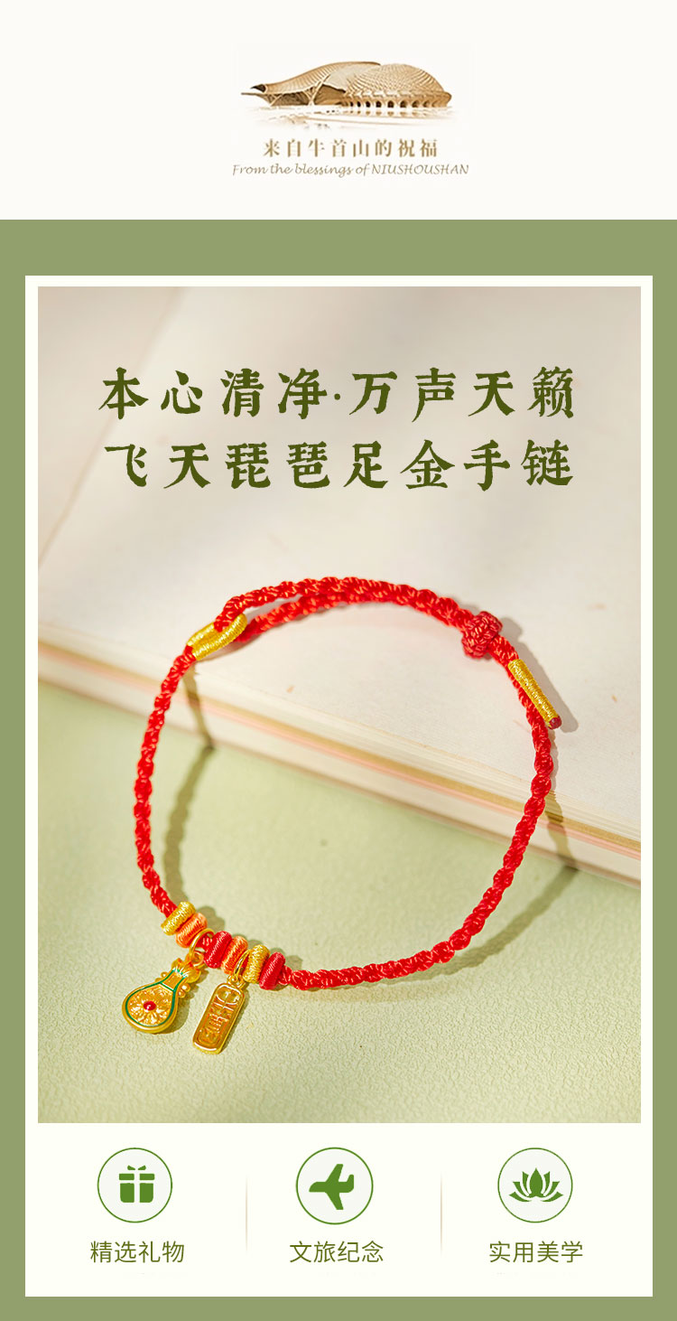 牛首山文创飞天琵琶足金手链南京纪念品黄金吊坠红手绳七夕礼物