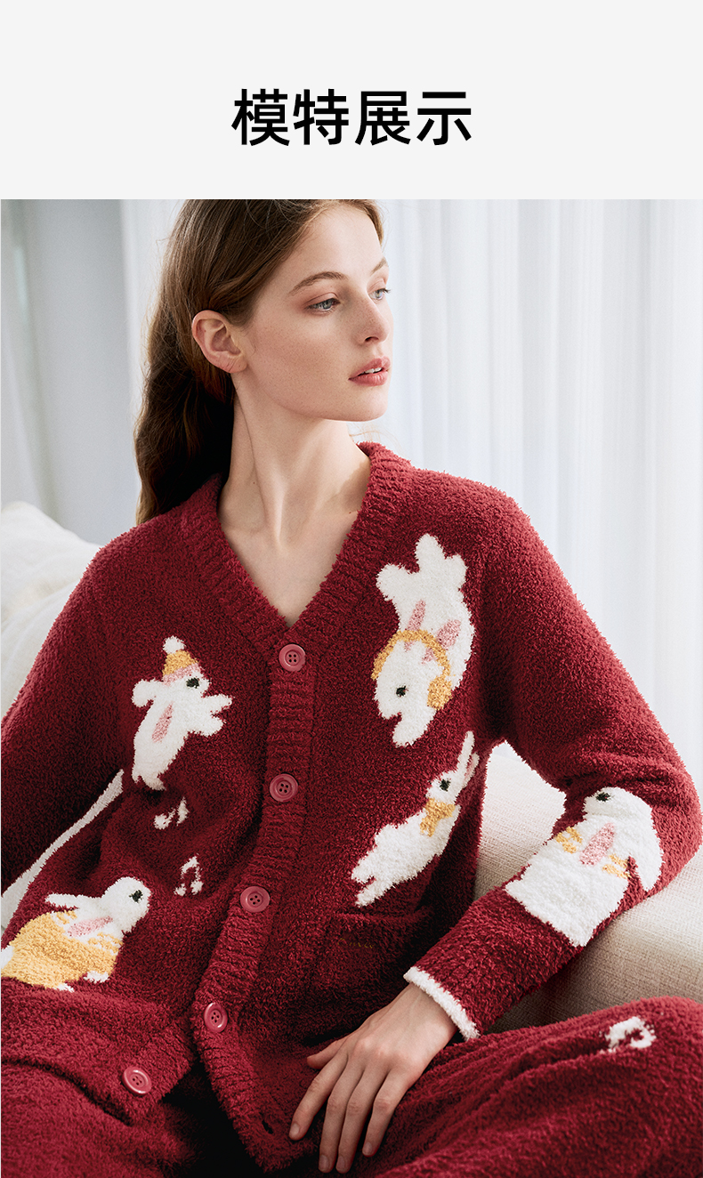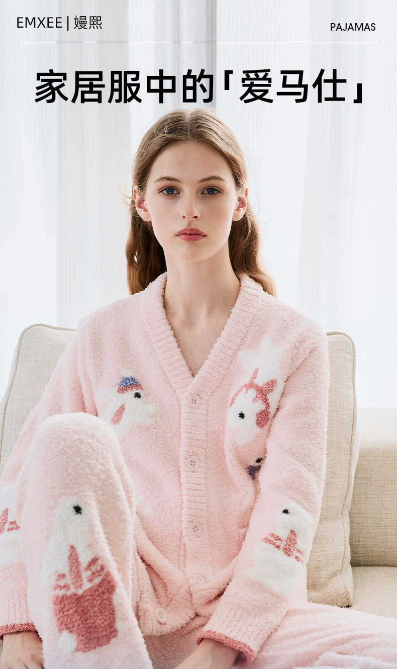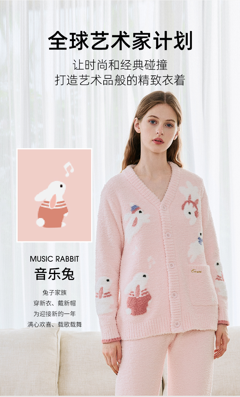 【新客福利】EMXEE嫚熙音乐兔半边绒家居服两件套