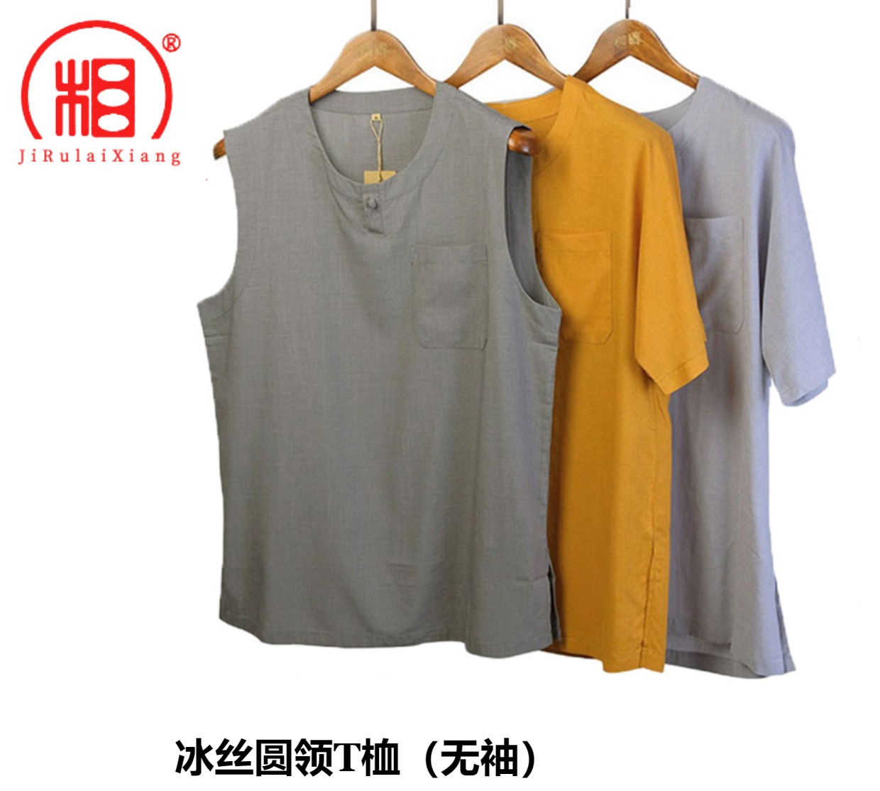 【相牌】僧服t恤 冰丝无袖上衣 棉麻短袖 男女同款夏透气和尚服