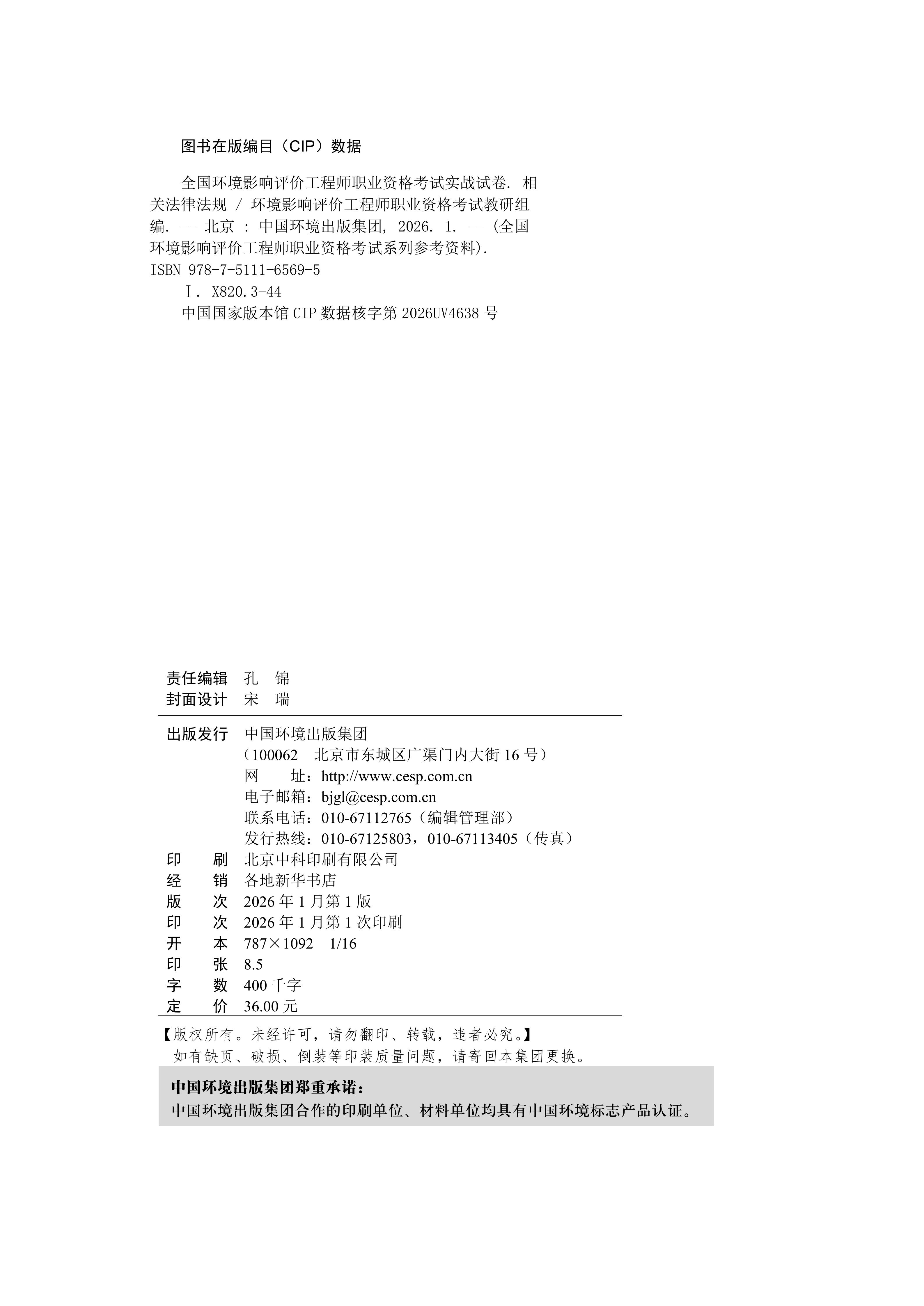 全国环境影响评价工程师职业资格考试实战试卷. 相关法律法规978-7-5111-6569-5全国 环境影响评价工程师职业资格考试系列参考资料