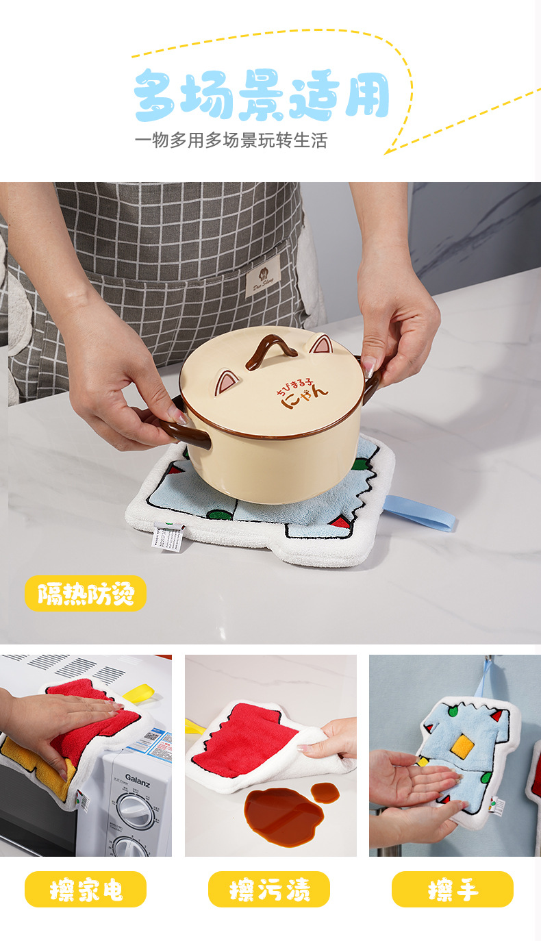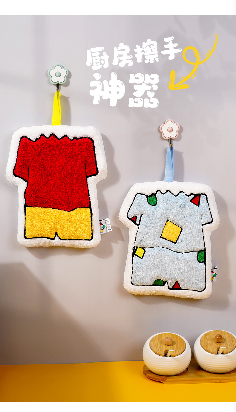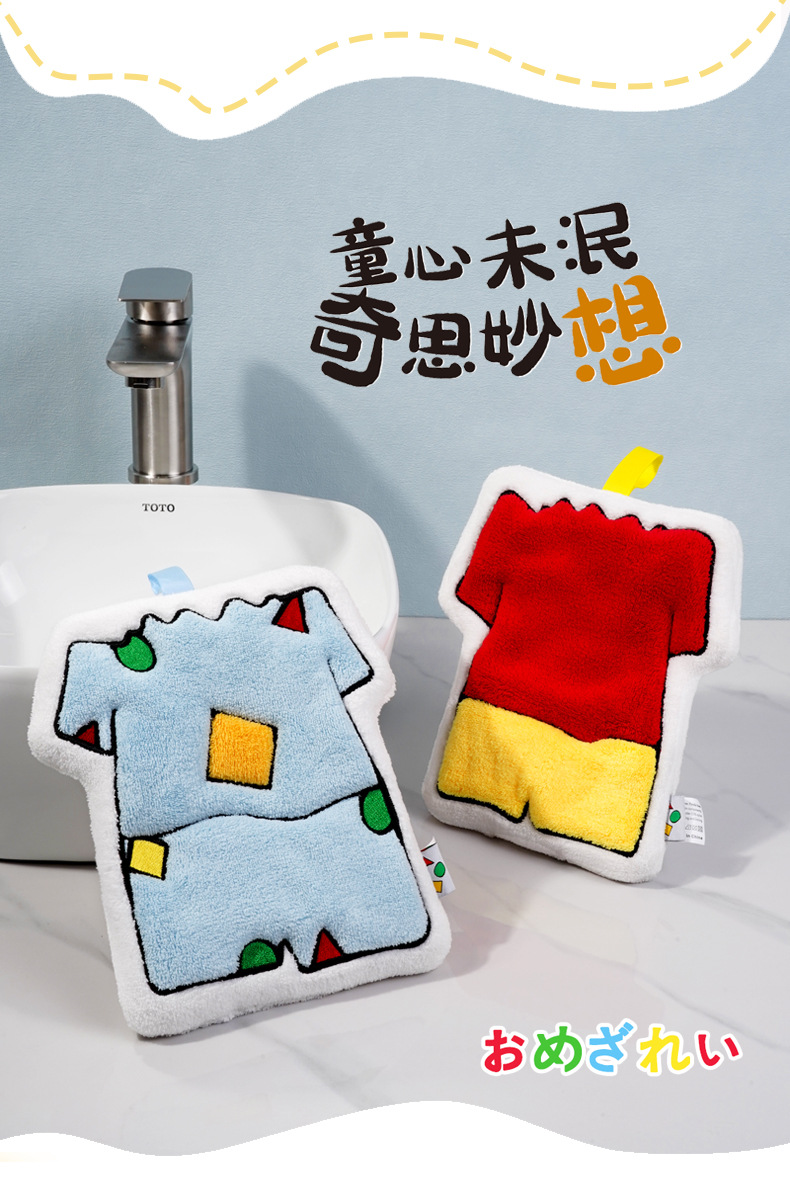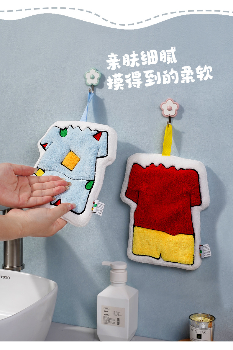 「日系可爱风」可爱小新卡通创意挂式擦手巾 珊瑚绒加厚儿童手帕厨房用品卫生间抹布