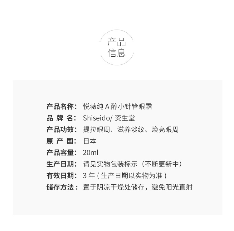 【保税仓】资生堂悦薇眼霜 高阶纯A醇小针管抗皱眼霜 20ml(有效期至28年2月)