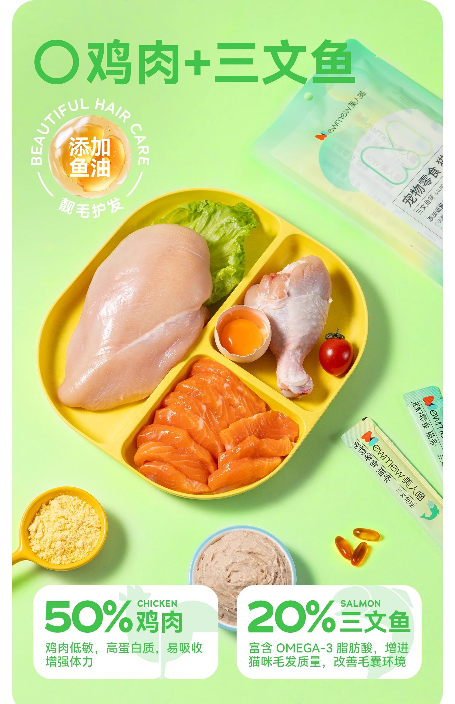 美人喵 猫条 升级款 添加鱼油/蛋黄粉 补水营养靓毛增肥湿粮猫零食