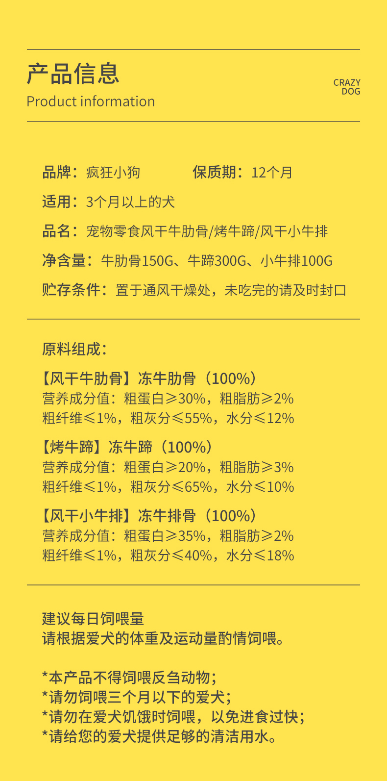 | 犬零食种类: 肉干/肉条 | 剩余保质期: 6个月以上 |