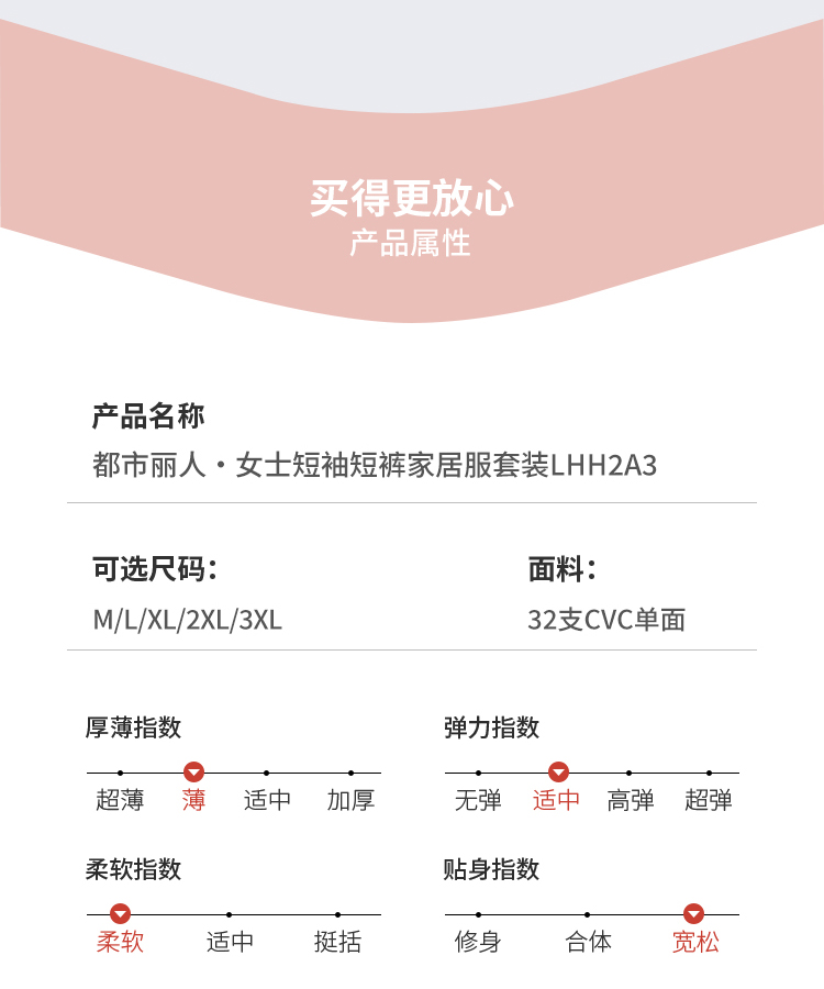 都市丽人超值精选女士特价棉质短袖套装薄32支CVC单面短袖类LHH2A3