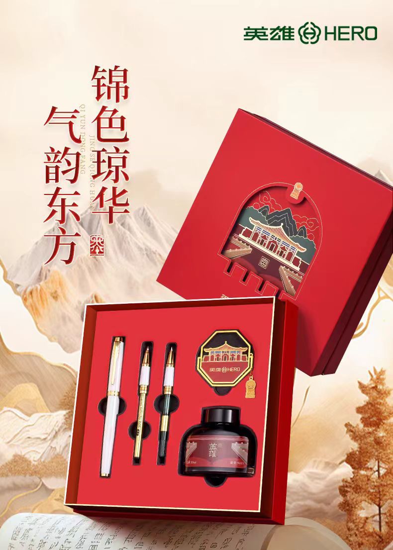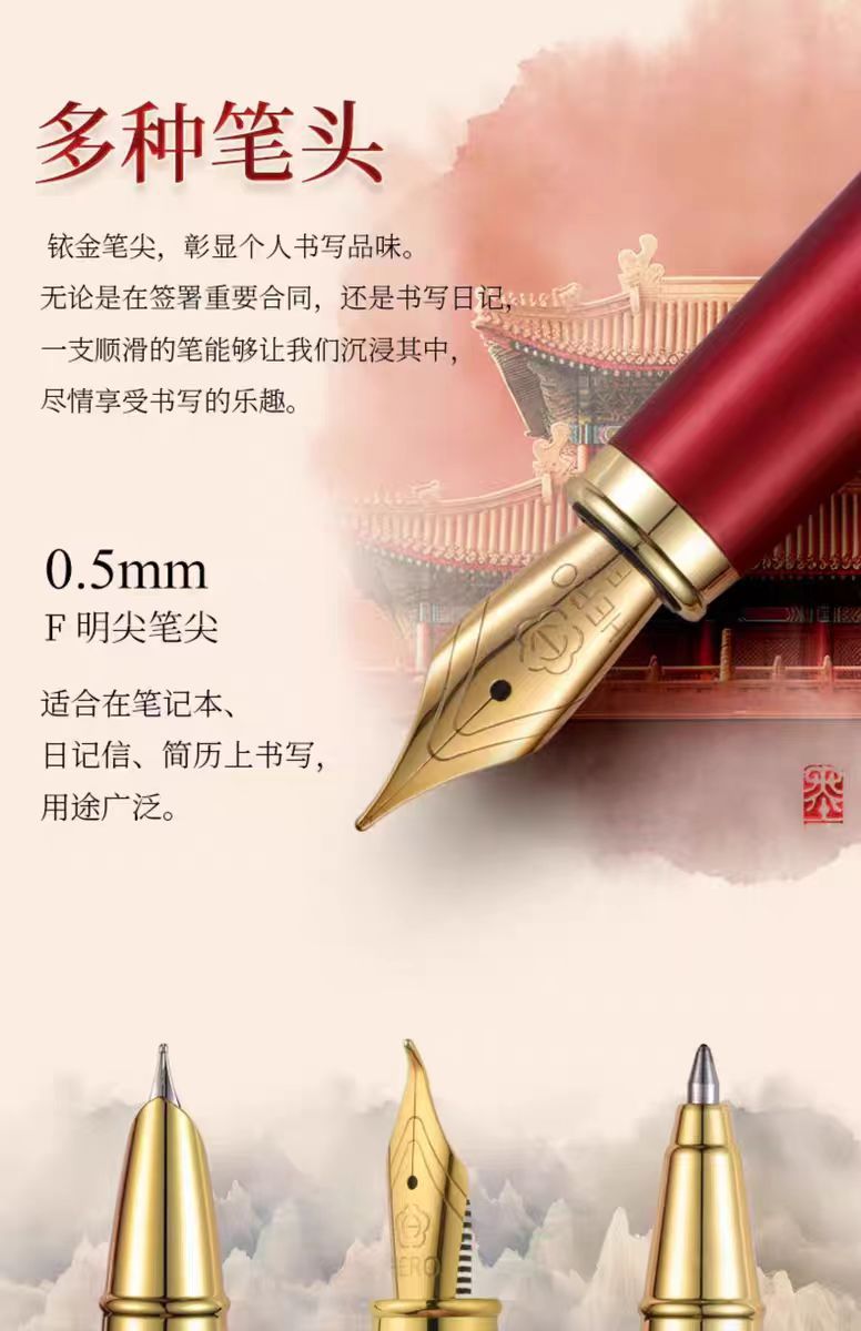 英雄钢笔故宫文创礼盒伴手礼 中国风书签钢笔墨水礼品套装 元旦新年春节礼物
