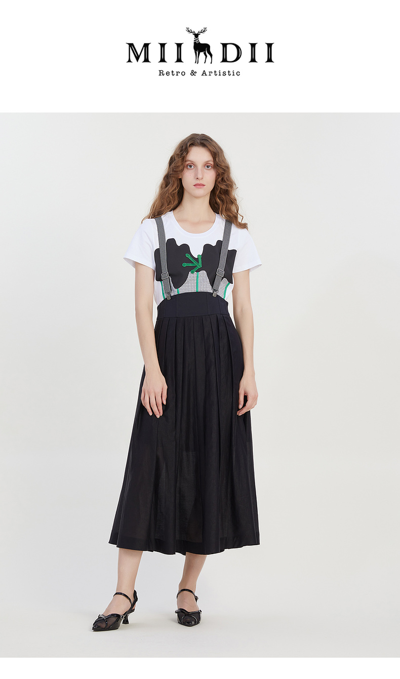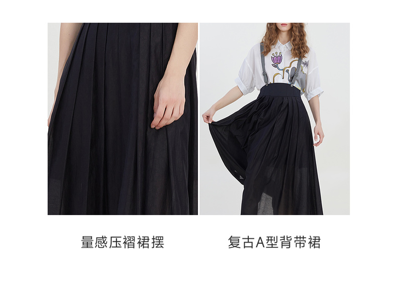 谜底背带半身裙女2023夏季新款时尚宽松大摆型长裙半裙232MB0537