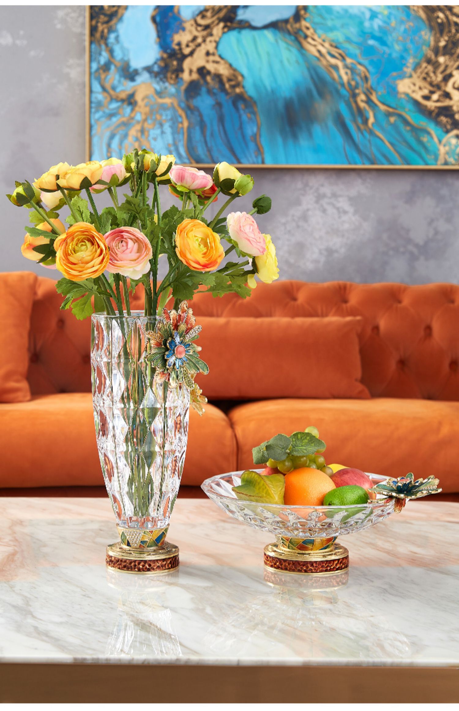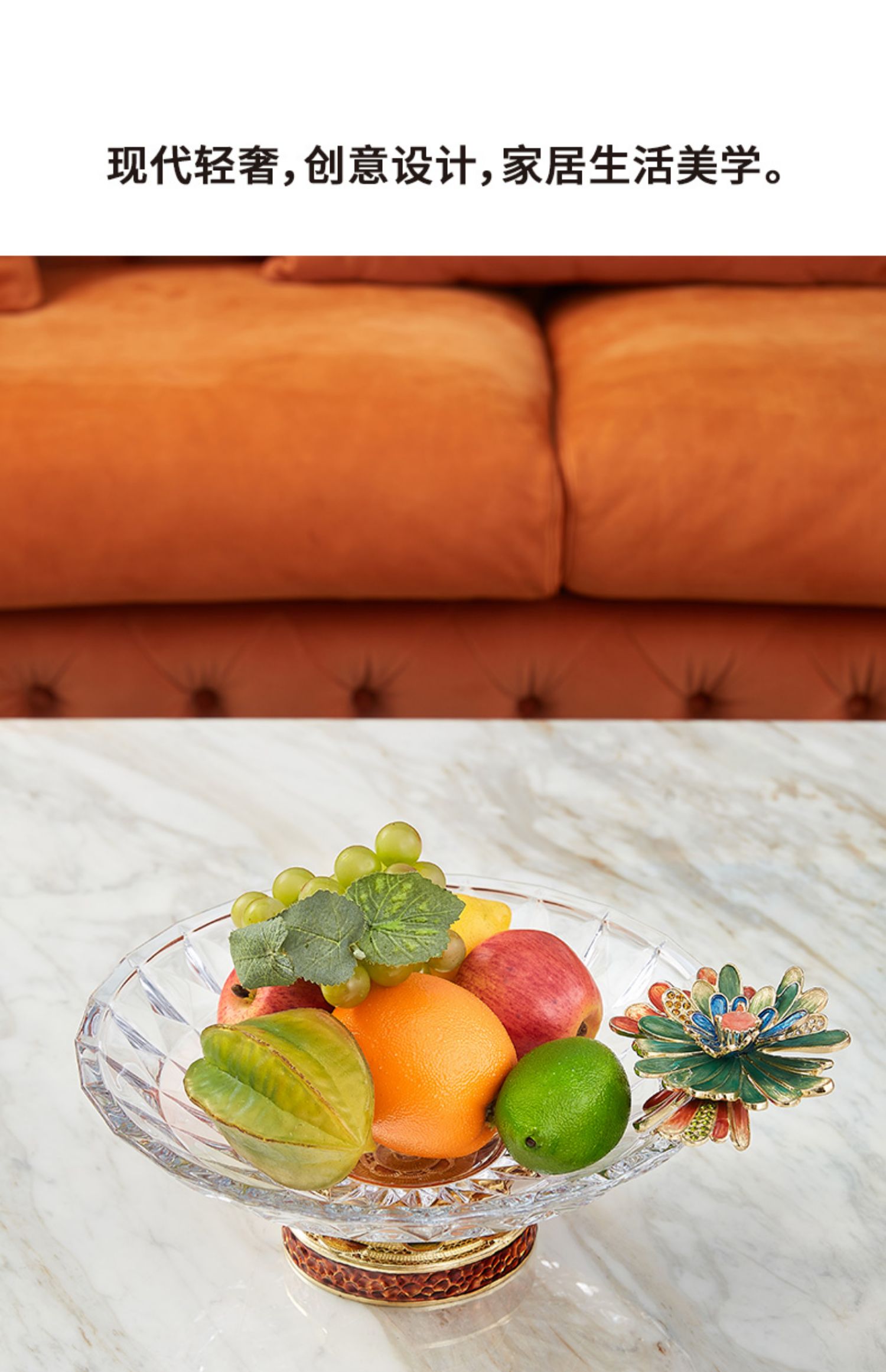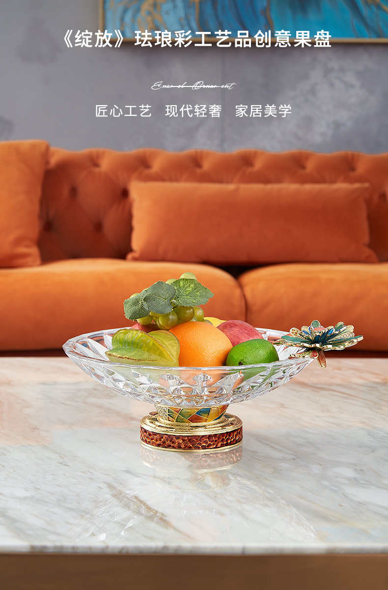 【样品清仓3折,仅1件无原包装,无货退款】罗比罗丹绽放珐琅彩工艺茶几家居饰品水果盘干果糖果盘【不支持补差,非质量问题不退不换】S