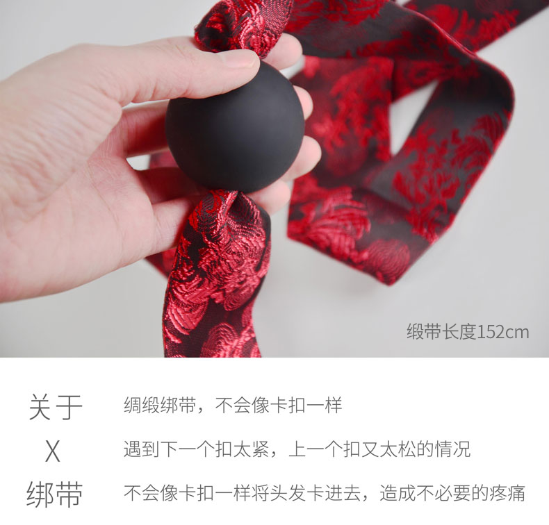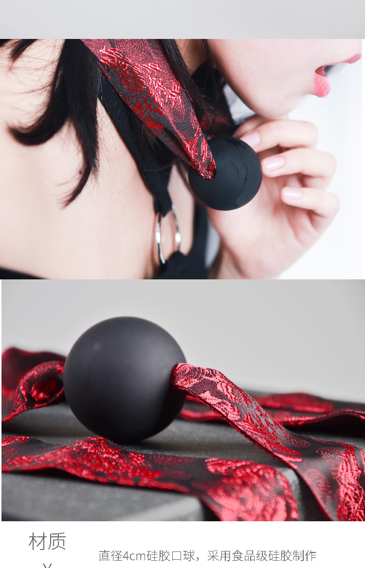刺绣缎带口球口塞不卡头发 复古风 硅胶材质