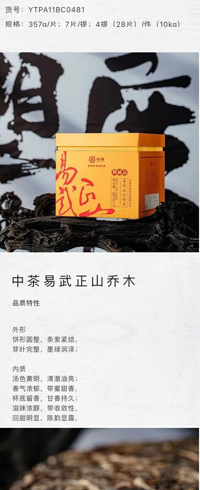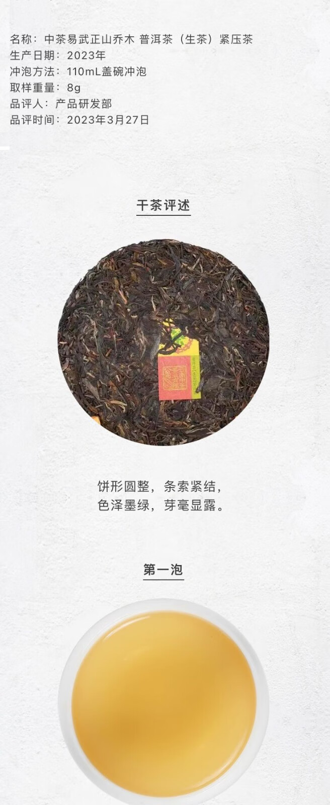 中茶2023年七星易武正山乔木典藏品普洱茶生茶/中茶茗山系列茶357克/饼 /云南干仓直发
