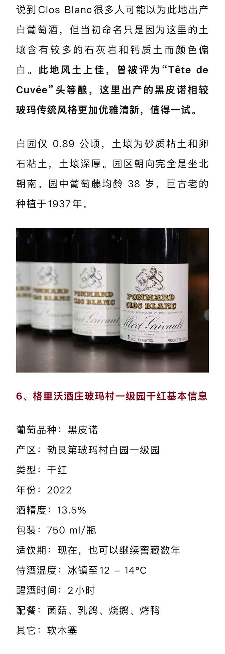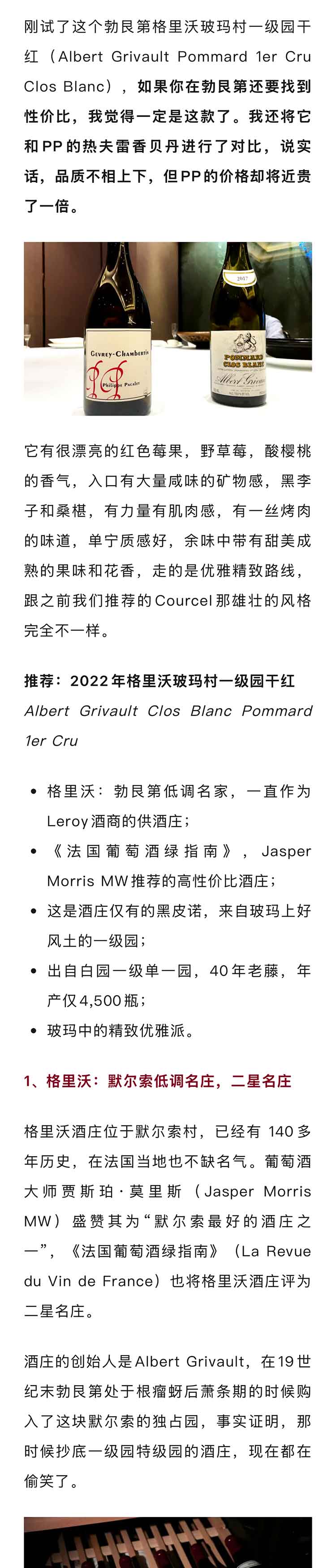 法国勃艮第2022年格里沃玻玛村一级园黑皮诺干红