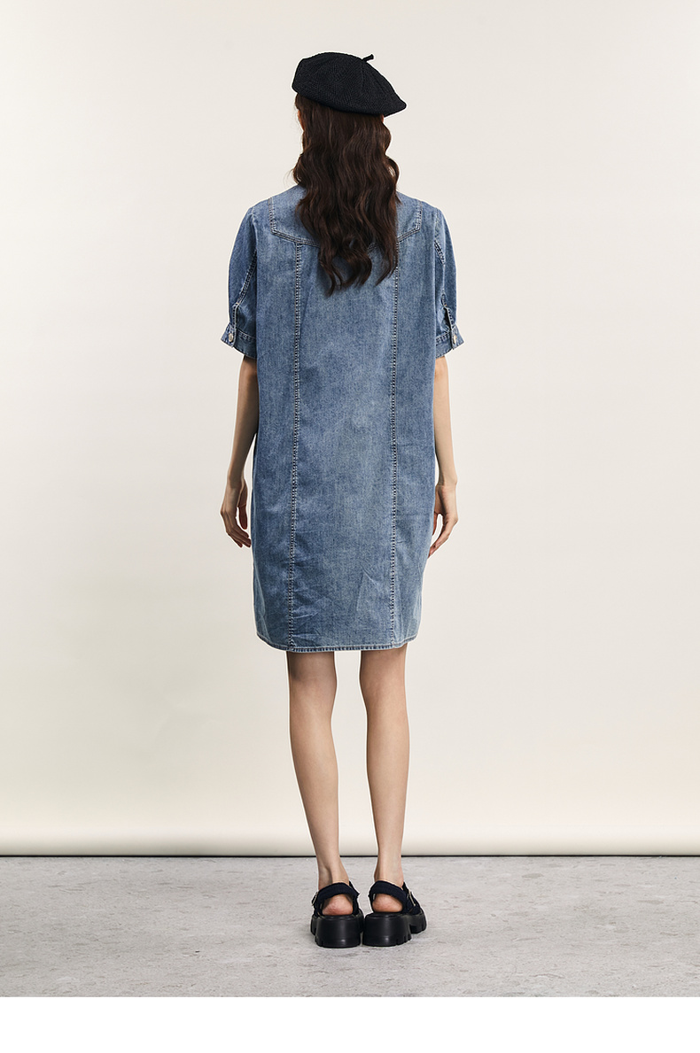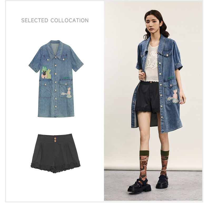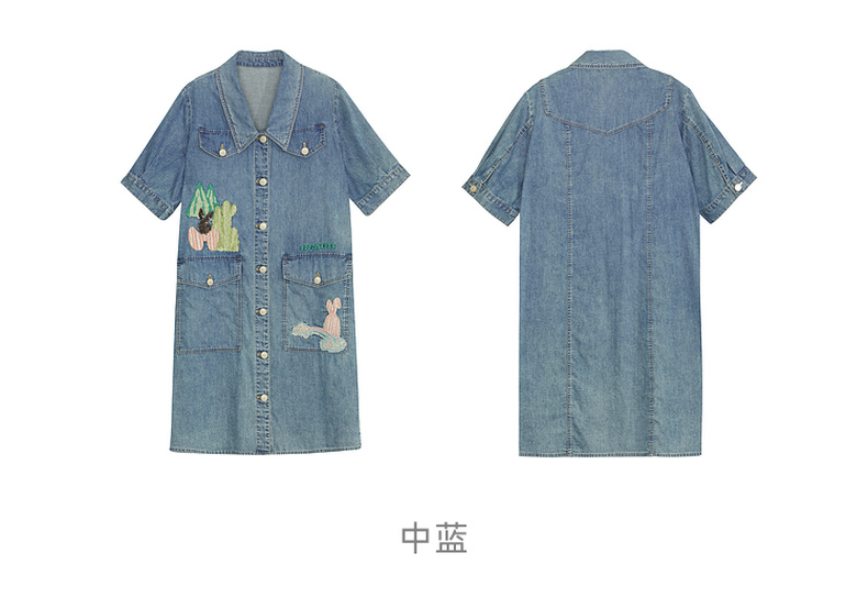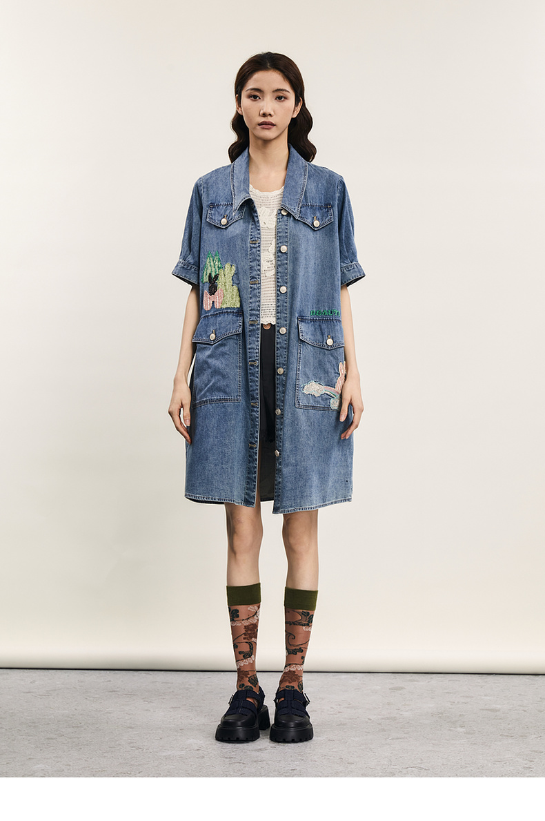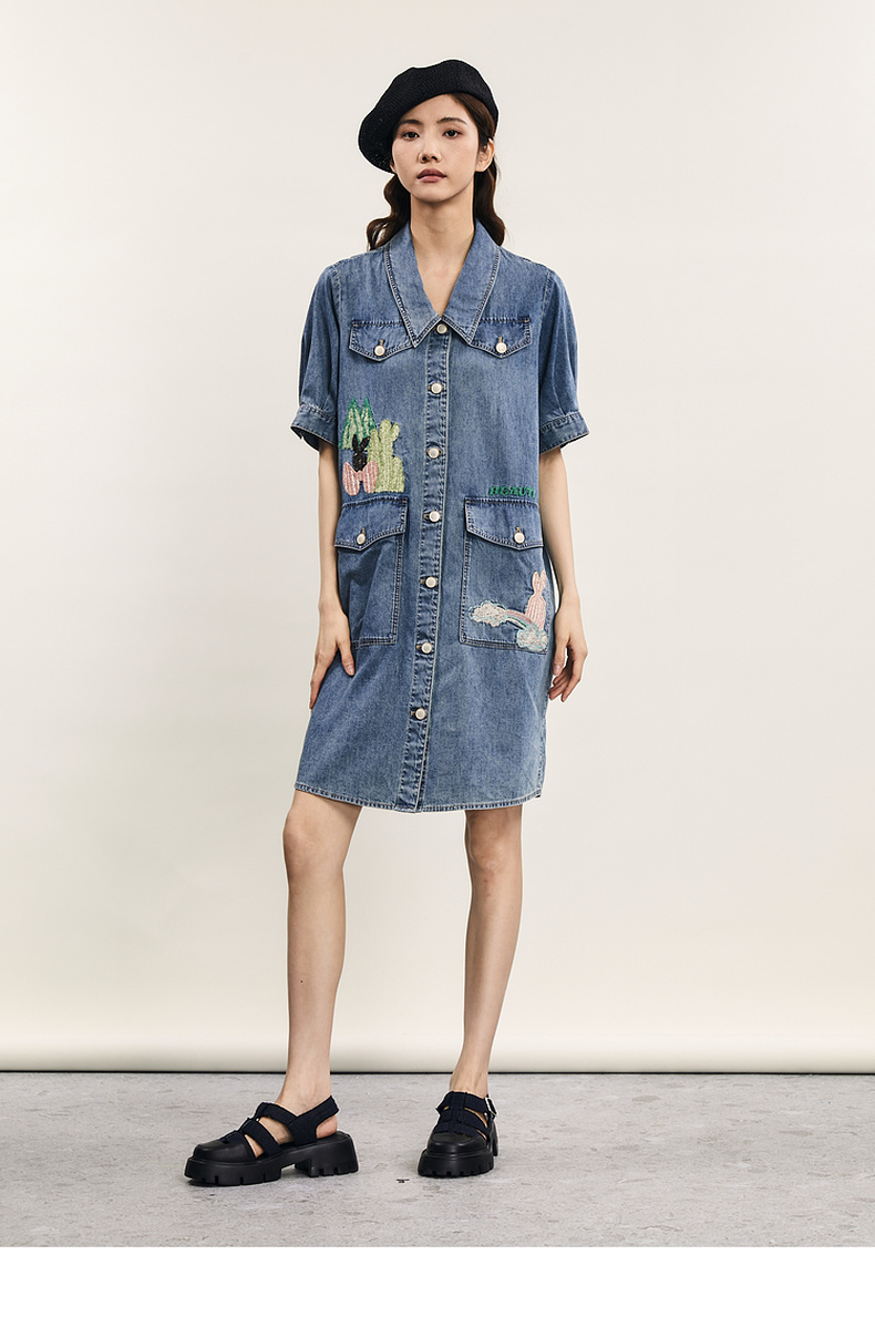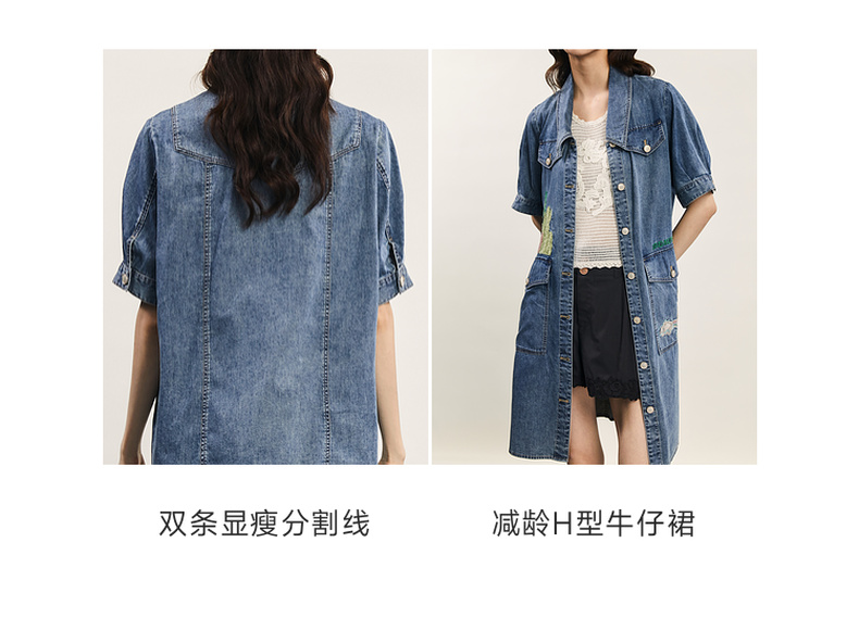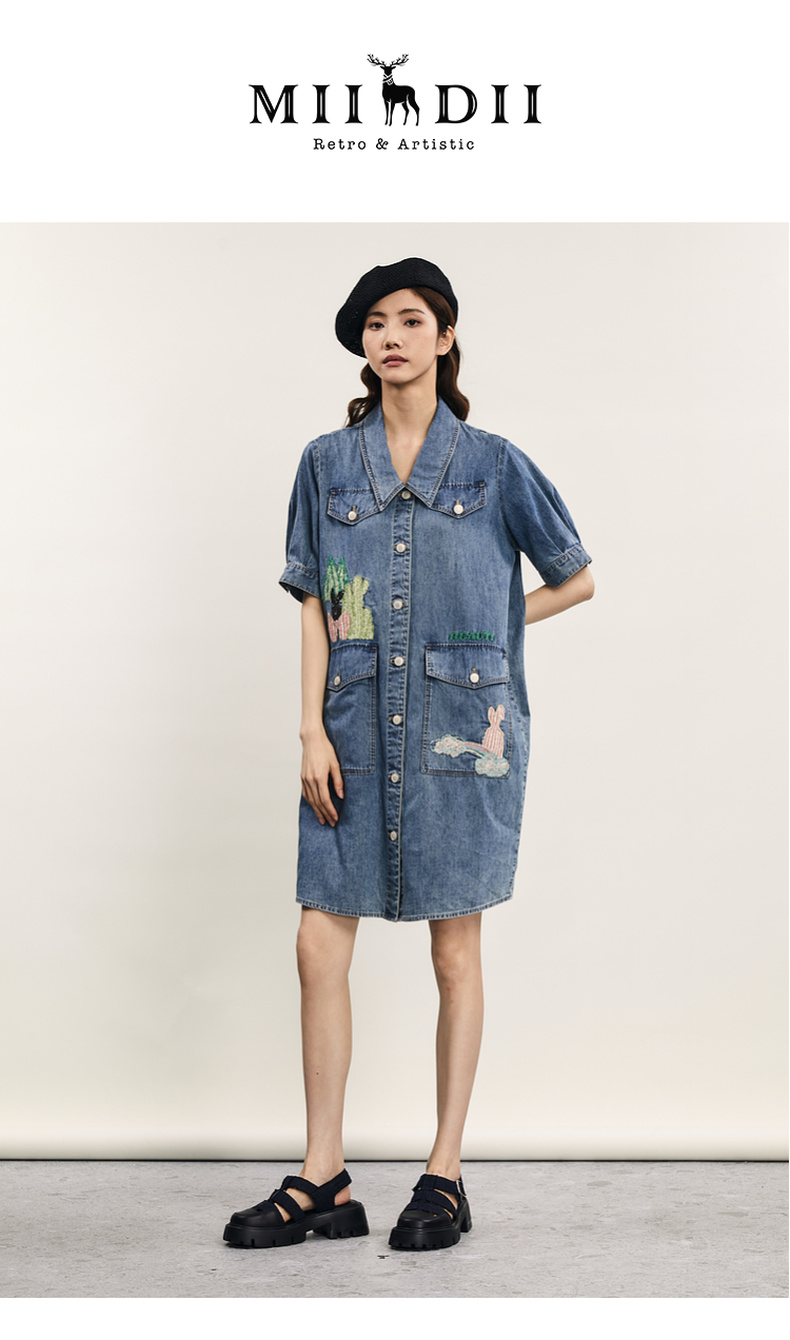 谜底连衣裙短袖女2024年夏款复古文艺风刺绣宽松直筒裙242ML0660
