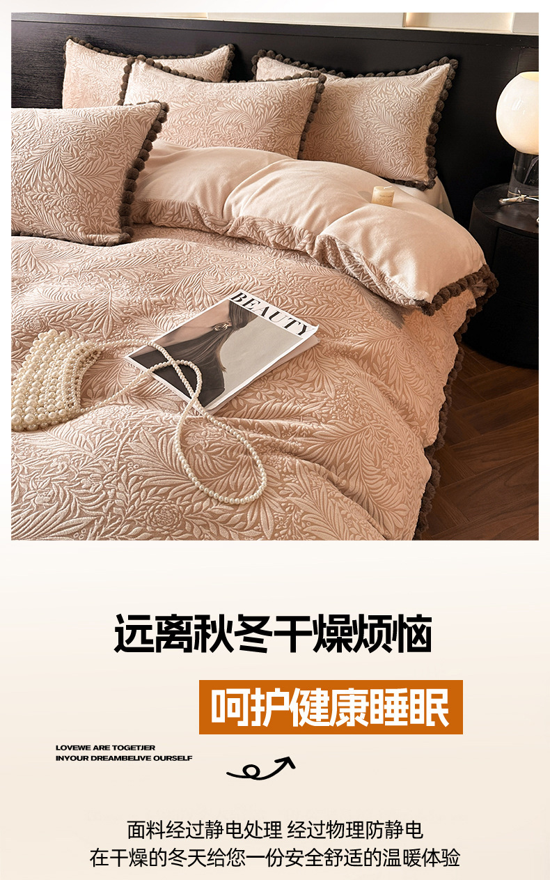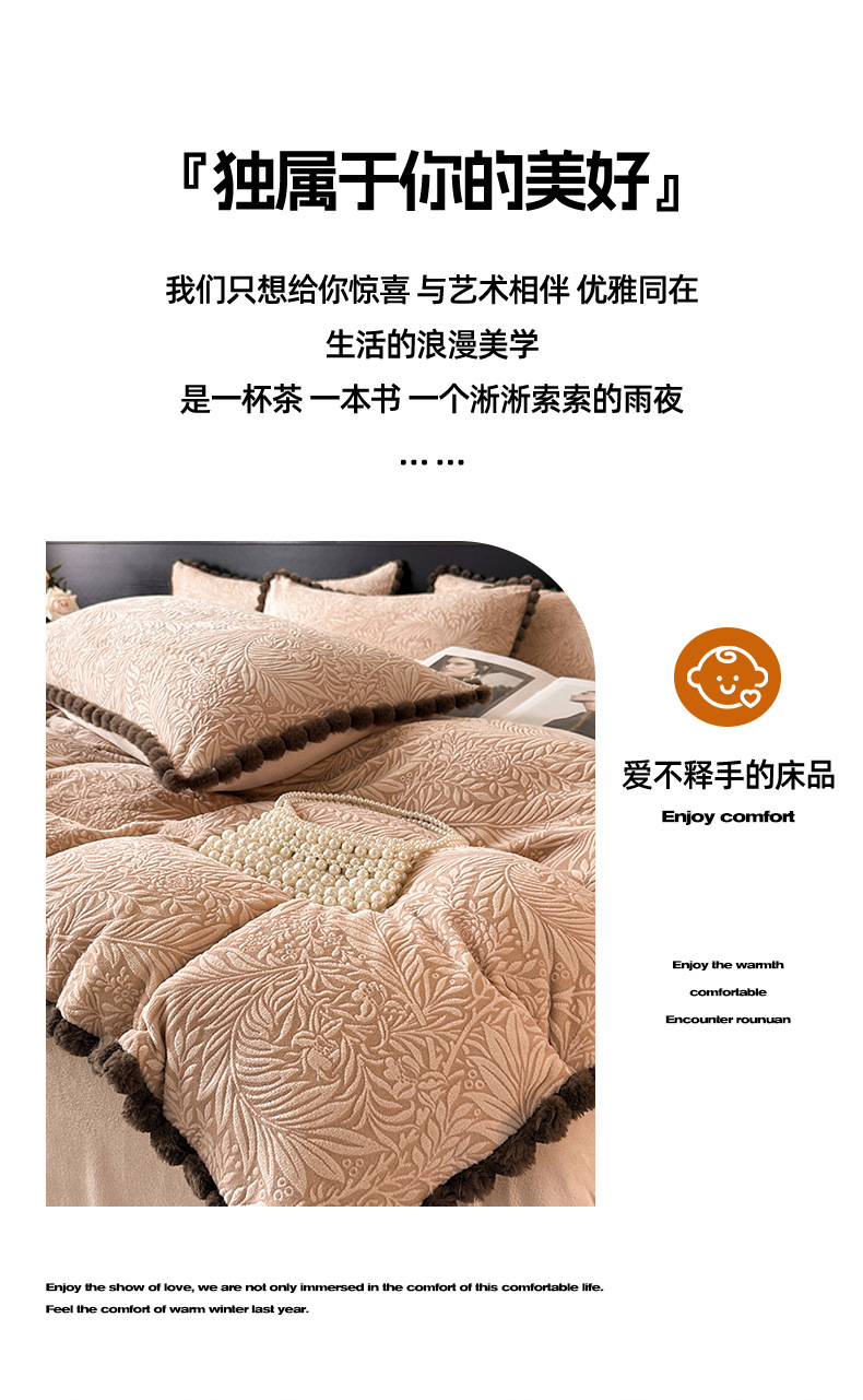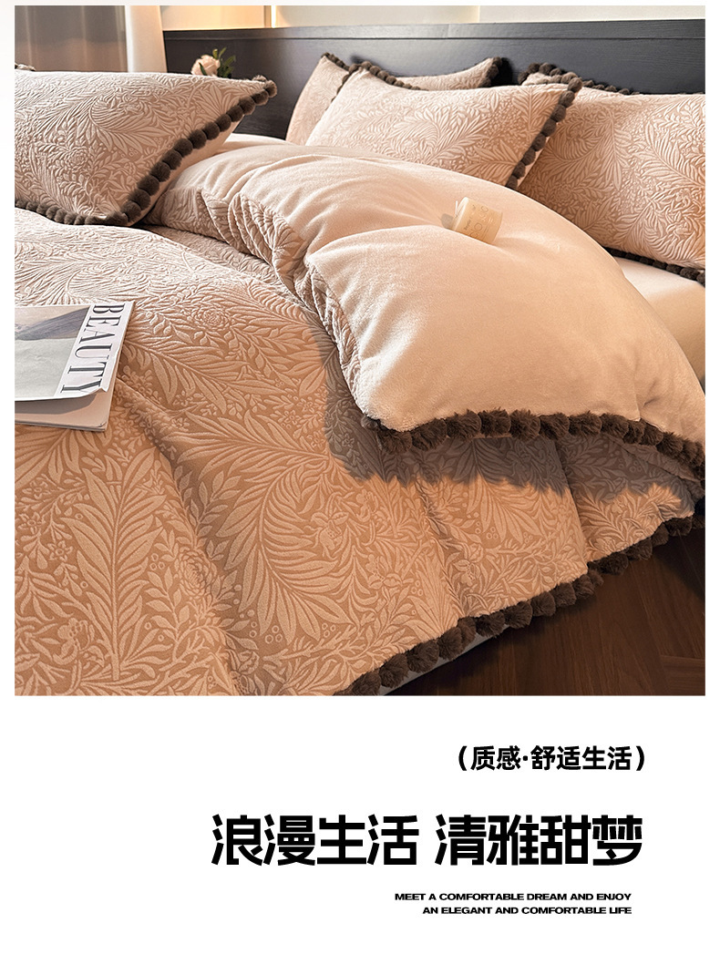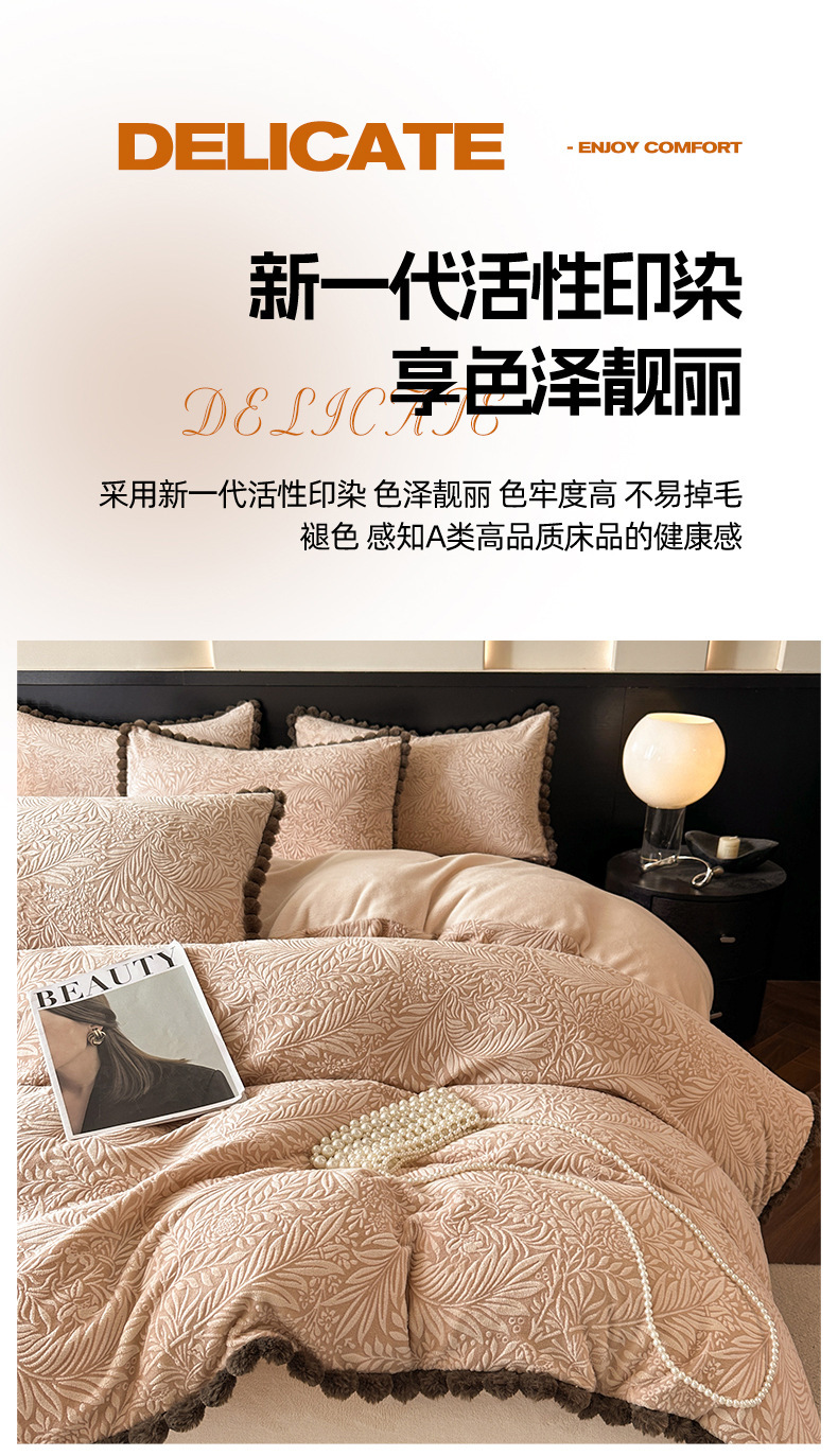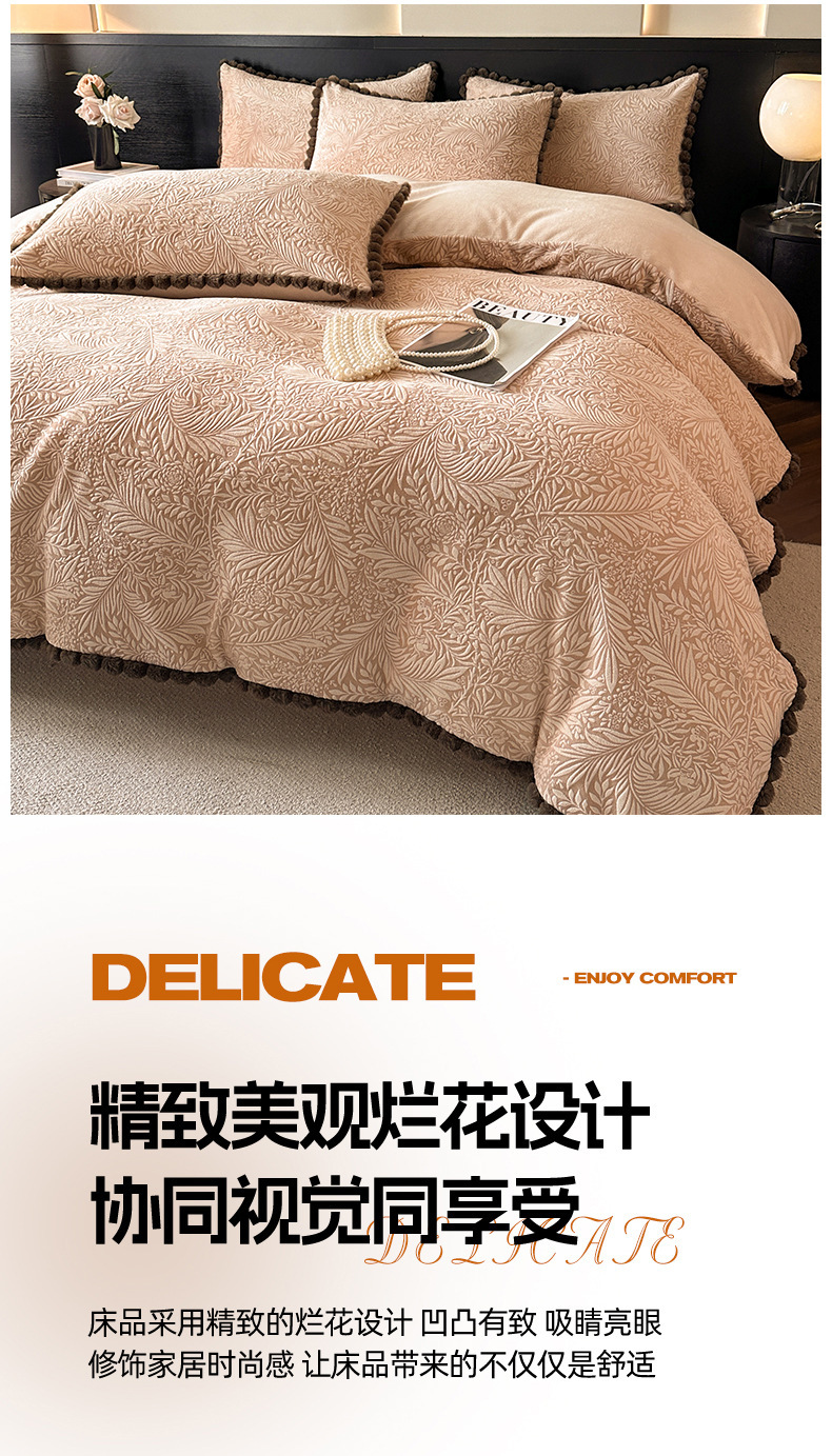 A类烂花加厚牛奶绒 床上四件套冬季雕花双面珊瑚法兰绒被套三件套4