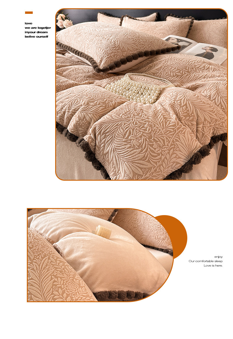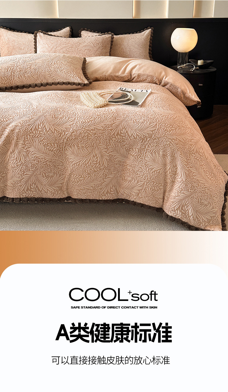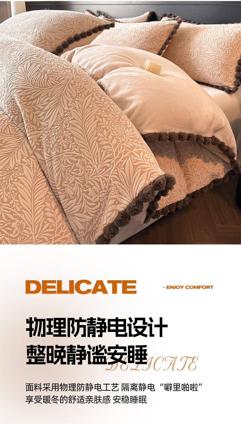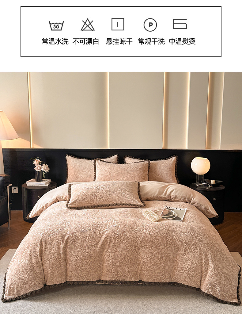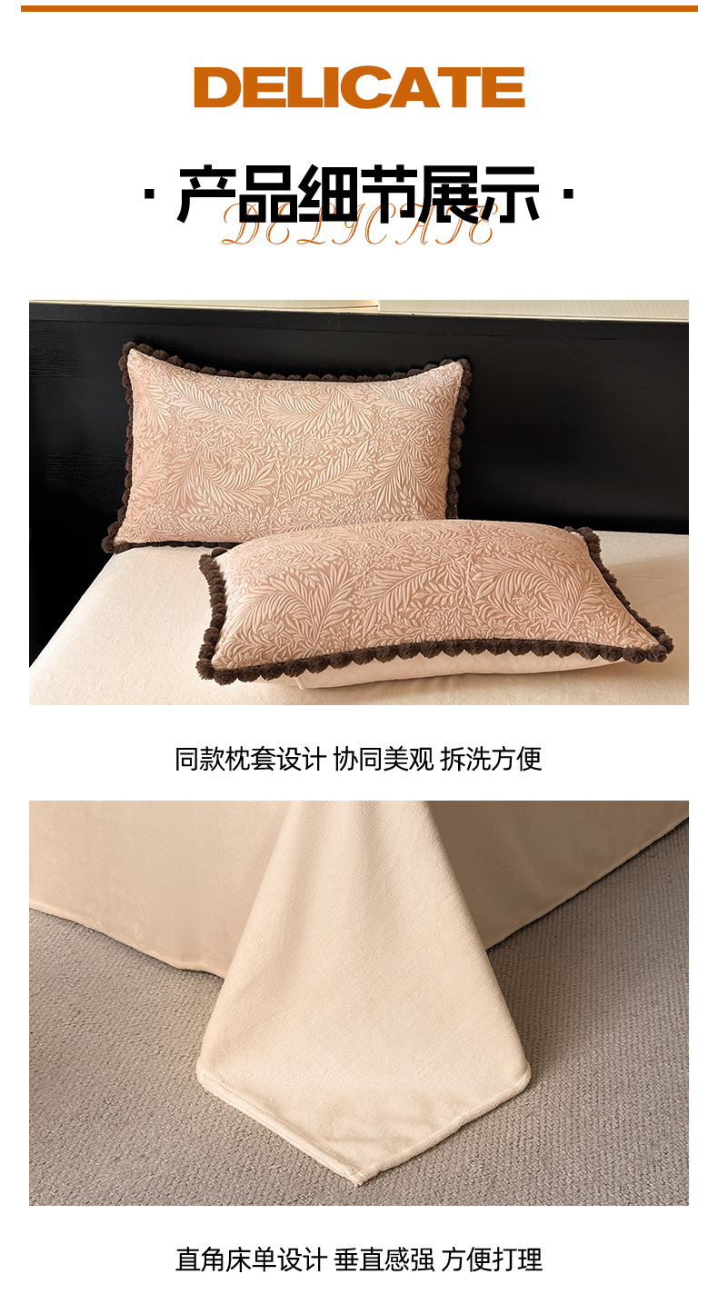 A类烂花加厚牛奶绒 床上四件套冬季雕花双面珊瑚法兰绒被套三件套4