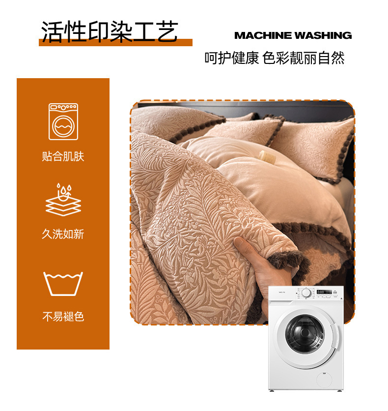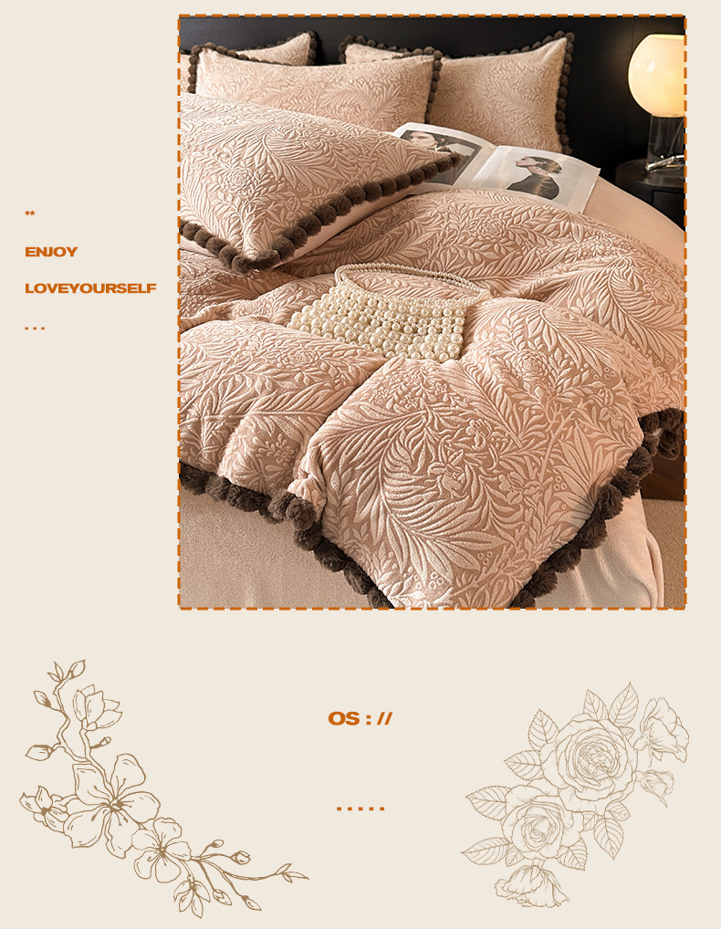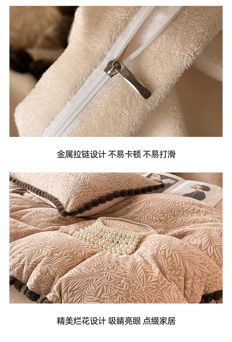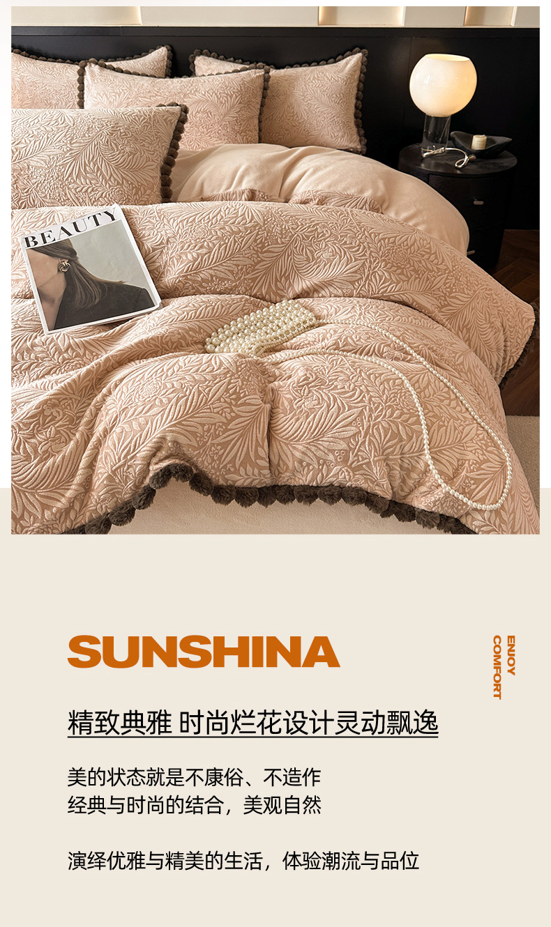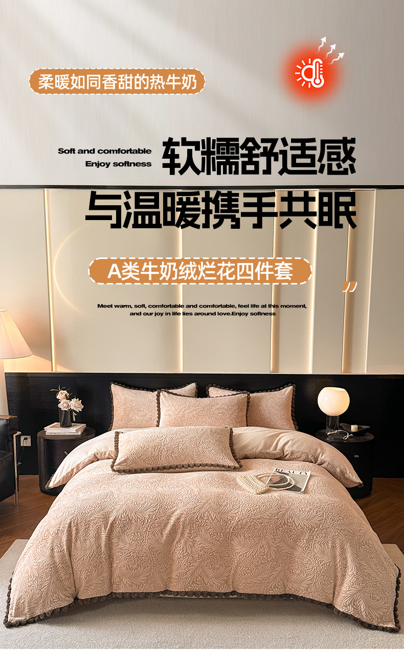A类烂花加厚牛奶绒 床上四件套冬季雕花双面珊瑚法兰绒被套三件套4