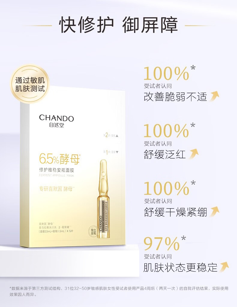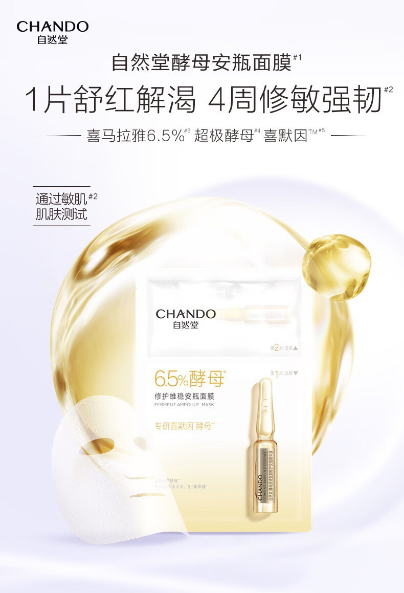 自然堂 酵母肌底修护维稳安瓶面膜(喜默因)1.5mL+33mL 5片装