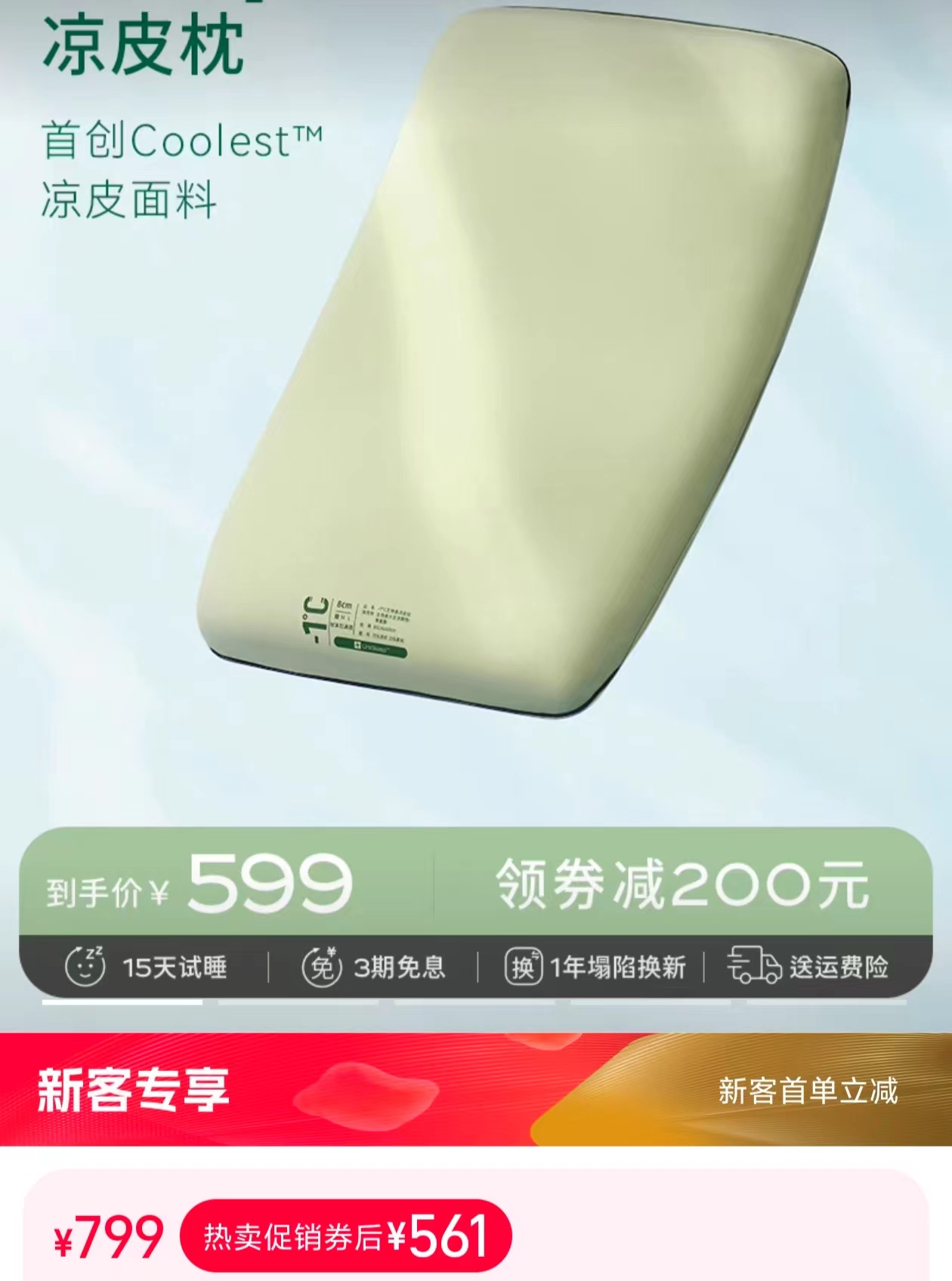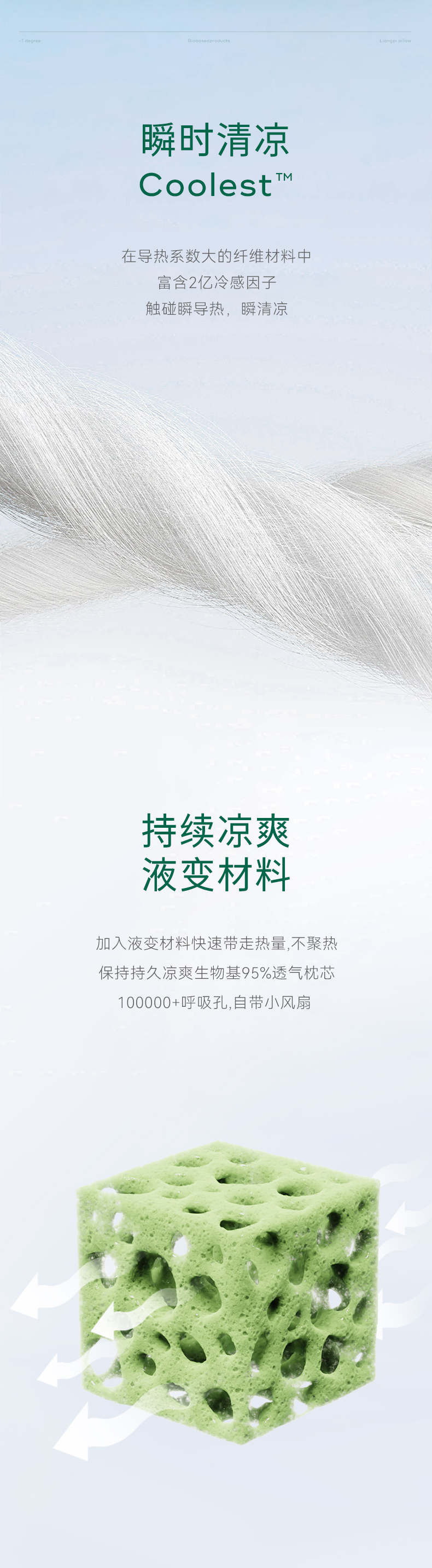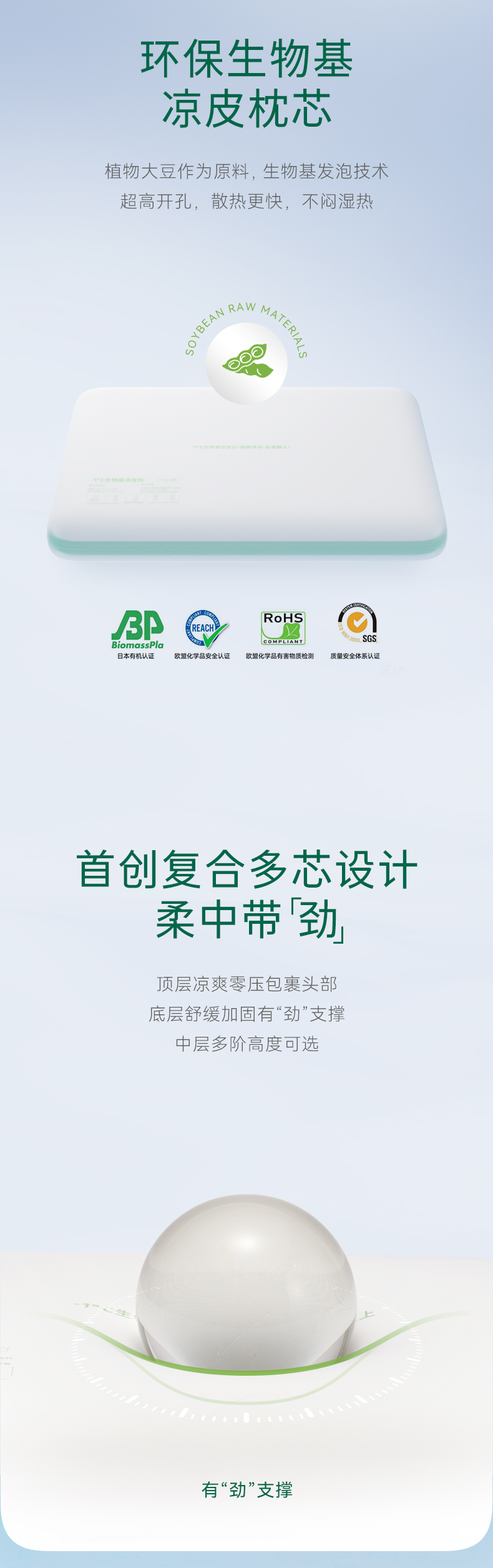【包邮】UniSleep生物基凉皮枕透气防汗恒温助眠睡眠枕头防头油