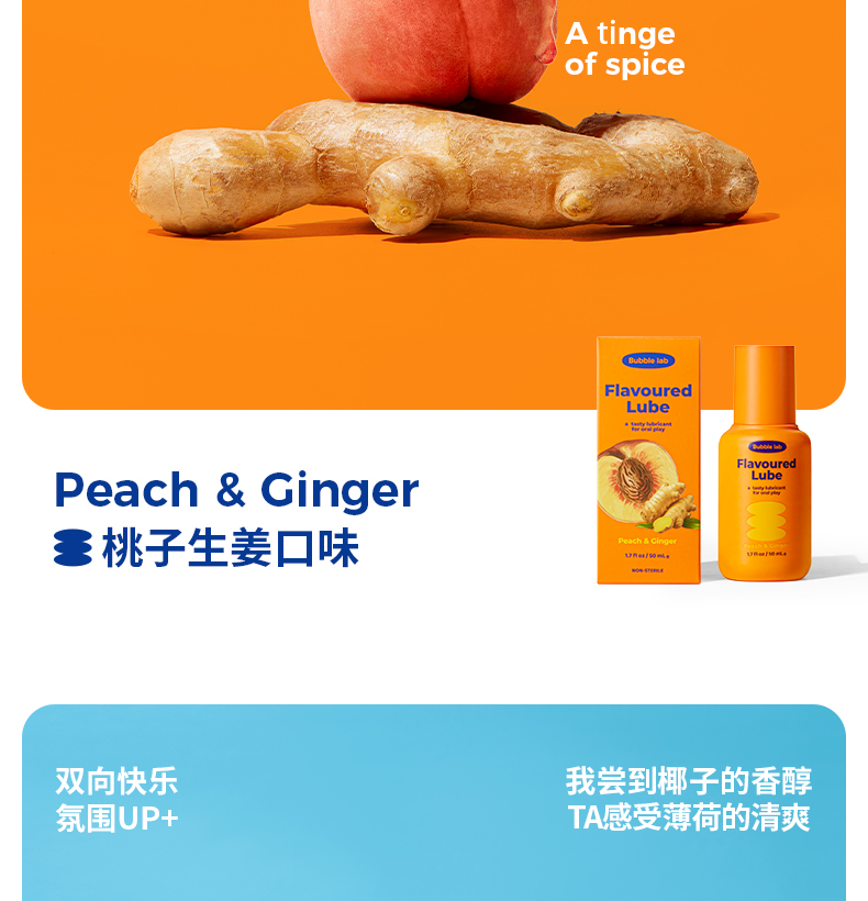 【Bubble Lab巴布情趣实验室】桃子生姜/椰子薄荷口味款润滑液50ml【福利品】