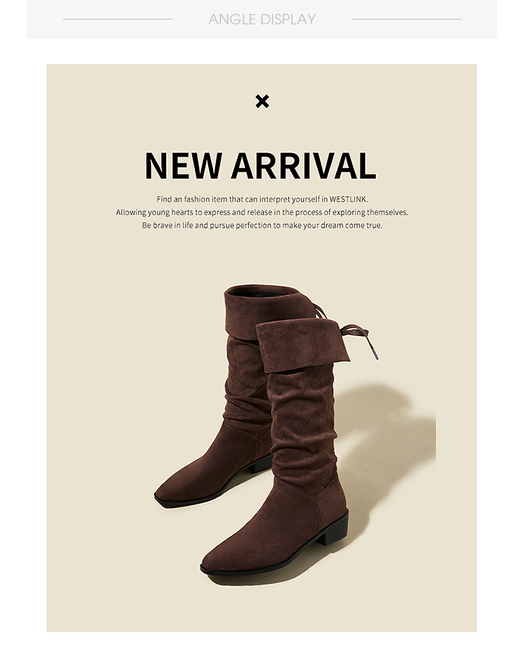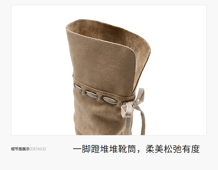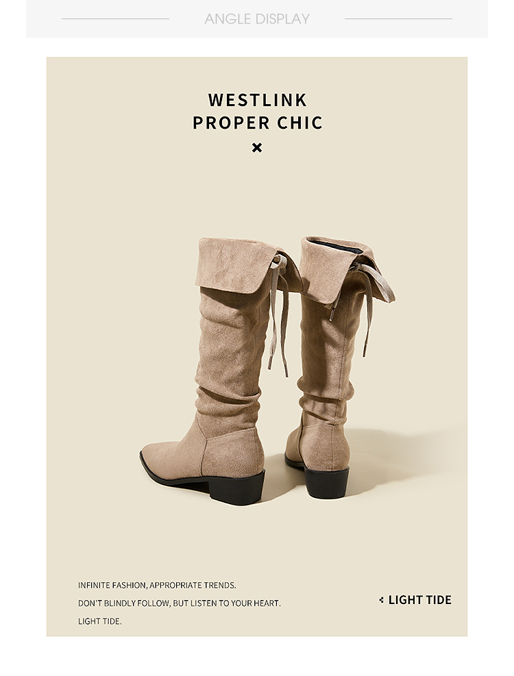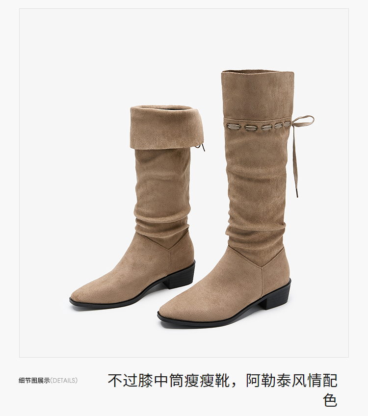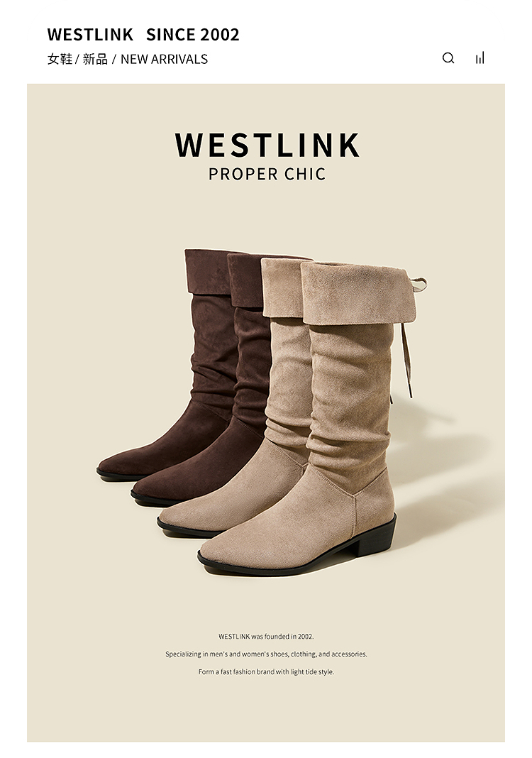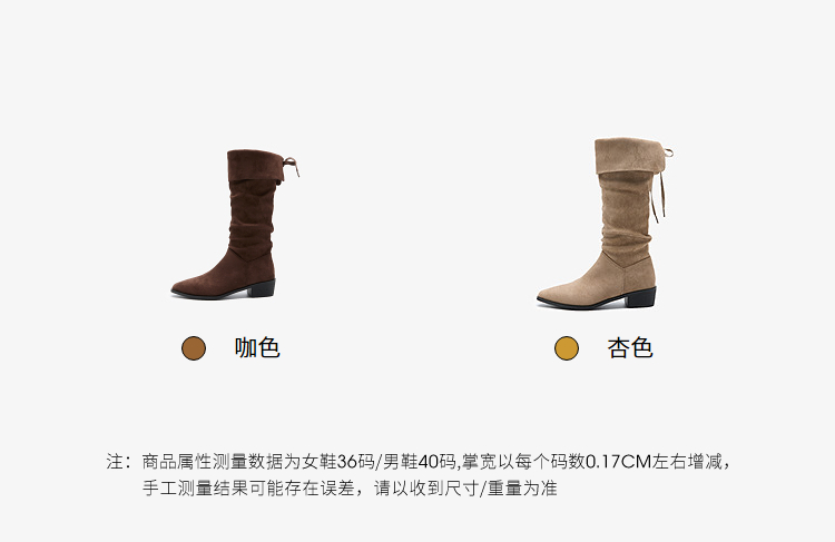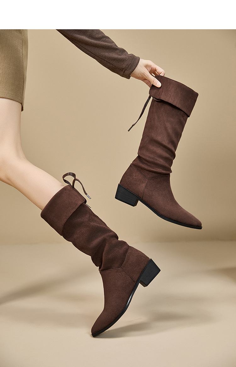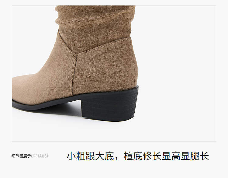西遇复古堆堆靴女新款秋冬美拉德西部牛仔靴粗跟尖头长筒靴子V2257246